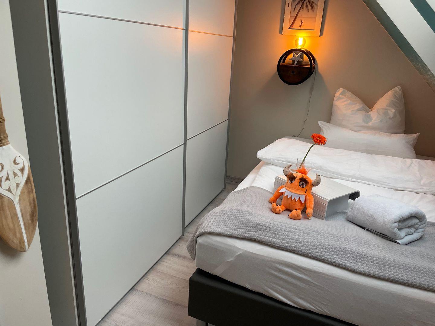 Bitte beachten Sie, es passen keine Babybetten in die Schlafzimmer. Selbstverständlich kann Ihr Baby mit im Elternbett schlafen, optional kann kostenpflichtig ein Rausfallschutz dazugebucht werden.