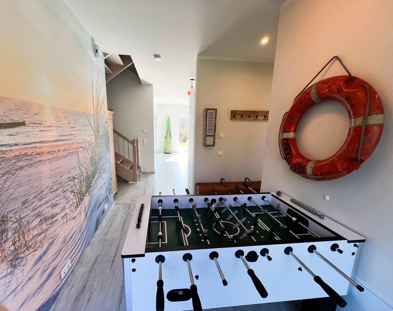 Das 5. Schlafzimmer bietet zusätzlich zwei hochwertige einzelne Matratzen zum Toben oder schlafen, ein Arbeitsplatz mit elektrisch höhenverstellbarem Schreibtisch zum Arbeiten sowie einen großen Gaming-Monitor zum Arbeiten oder Spielen.