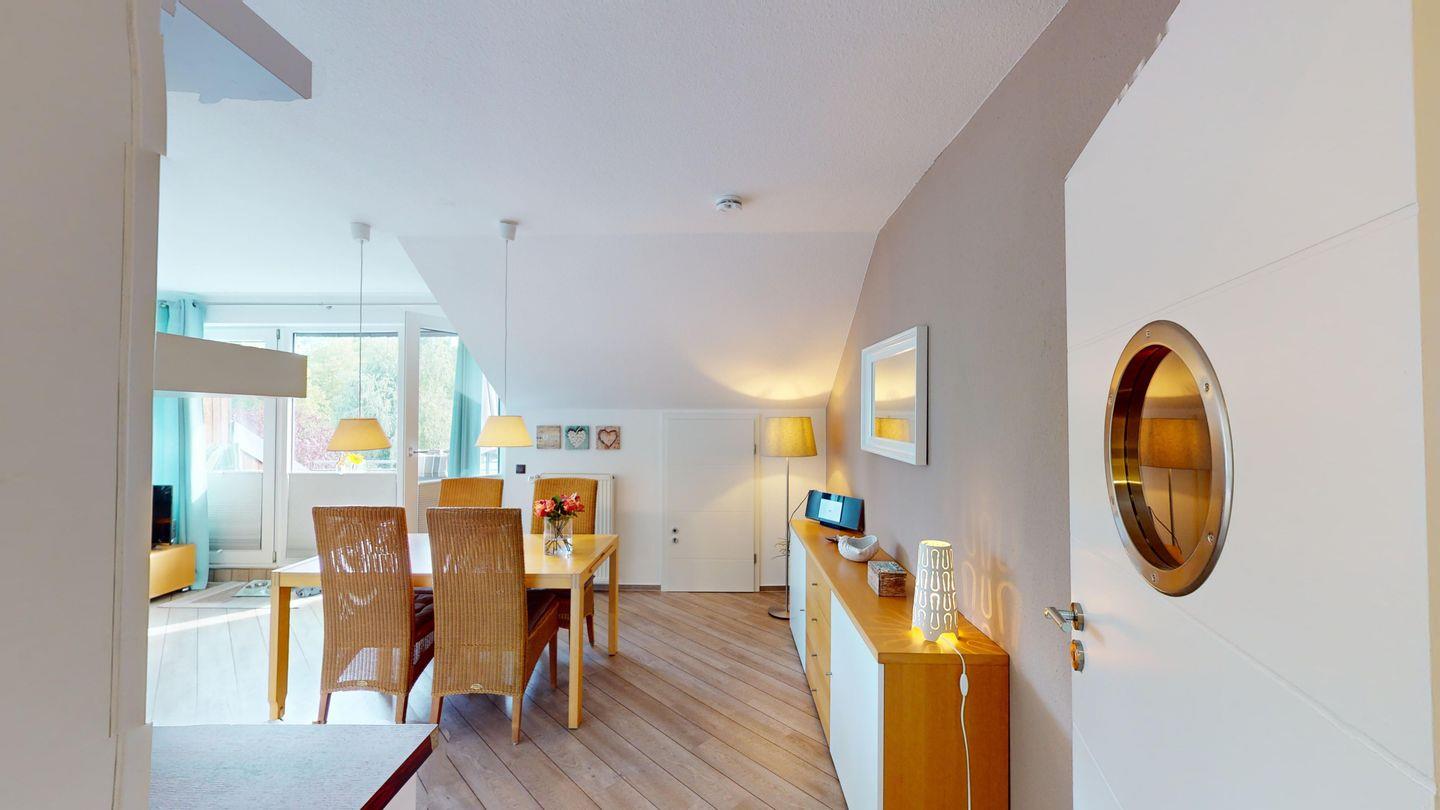 Diese gemütliche, 53 m² große Ferienwohnung im Dachgeschoss bietet Platz für bis zu 4 Personen und auch Ihr Hund ist willkommen. Parken Sie Ihr Auto auf dem wohnungseigenen Außenstellplatz.