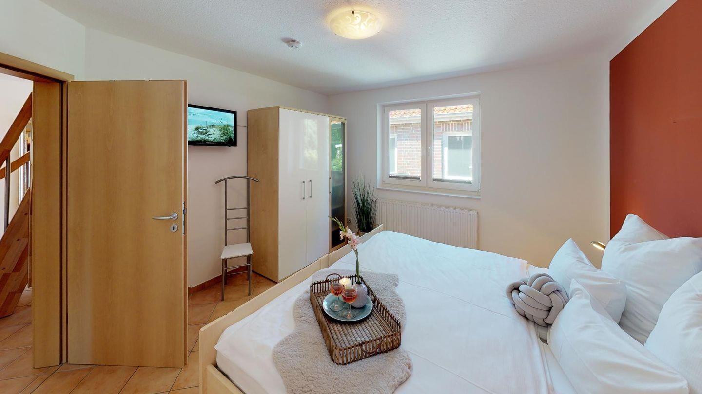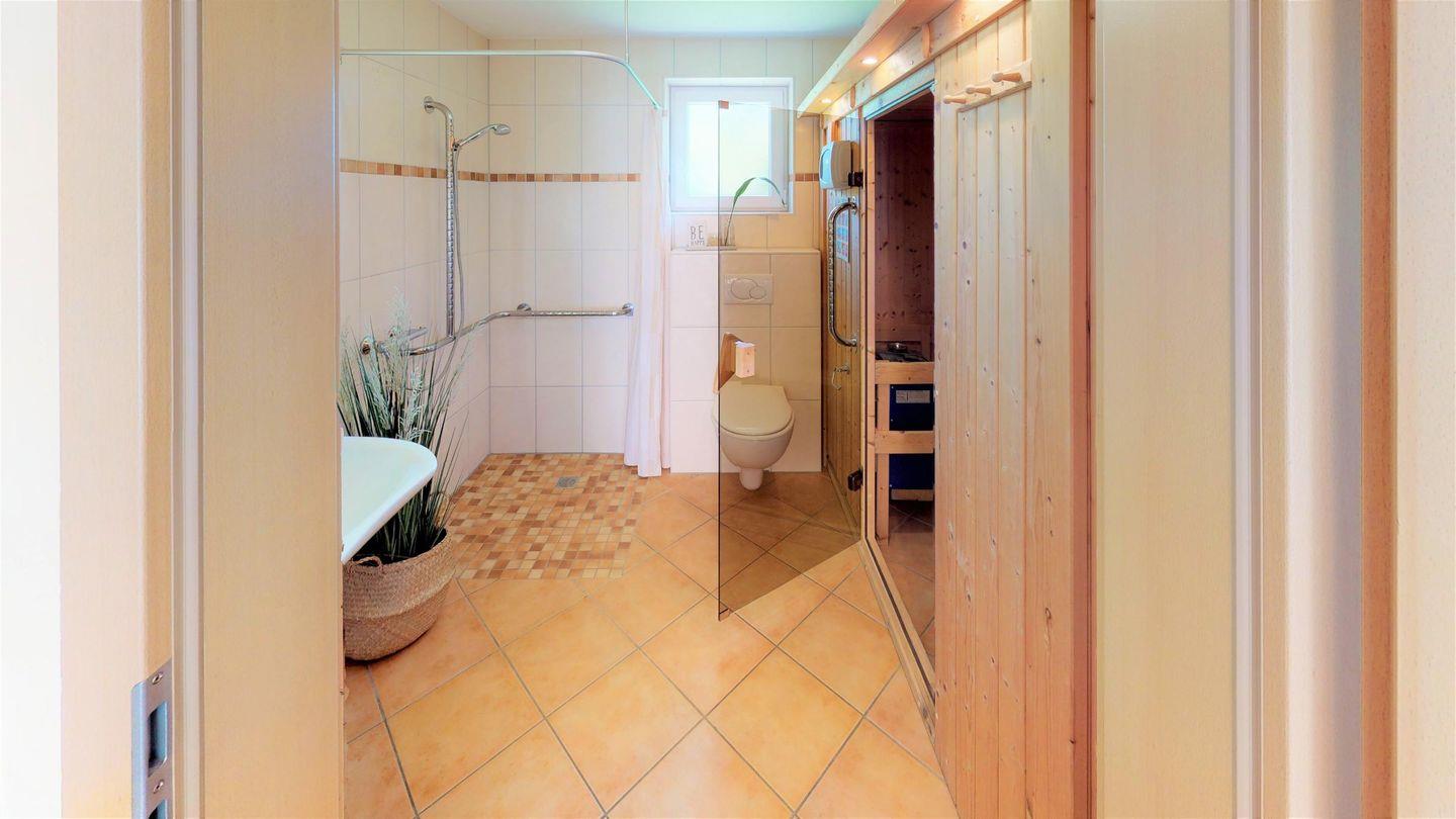 Es erwartet Sie ein großzügiger Wohnbereich mit Kaminofen und gemütlicher Sofagarnitur. Angrenzend liegt die offene Küche mit einem Essplatz. Im Erdgeschoss befinden sich zwei Schlafzimmer mit jeweils einem Doppelbett, ein Gäste-WC sowie ein rollstuhlgerechtes Badezimmer mit einer Sauna. Im Obergeschoss empfängt Sie ein zweiter Wohnbereich mit bequemen Schlafsofa für zwei Personen. Zusätzlich finden Sie hier ein zweites Duschbad und ein drittes, großes Schlafzimmer mit einem Doppelbett.