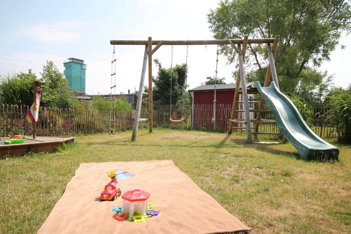 Je nach Sonnenstand haben Sie die Wahl zwischen einer Terrasse mit Gartenmöbeln, Grill und Strandkorb (Strandkorb während der Sommersaison) oder einem eingezäunten Garten mit einem Spielgerüst für Kinder. Ihre mitgebrachten Fahrräder können im Gartenhaus untergebracht werden.