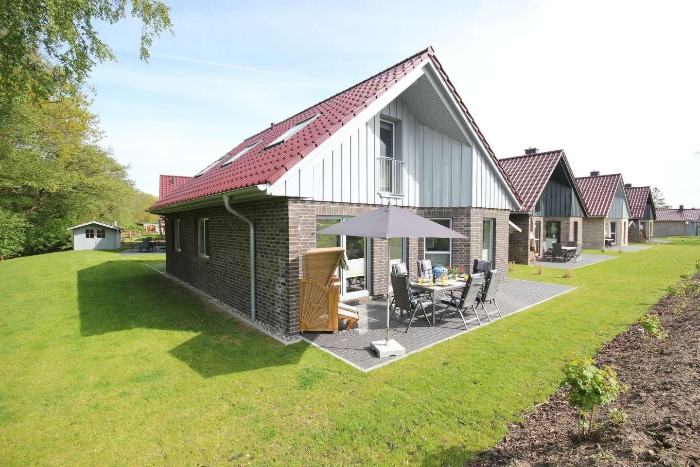 Modernes Ferienhaus nahe Strand mit Sauna, Kamin und großem Garten für erholsame Urlaubstage.