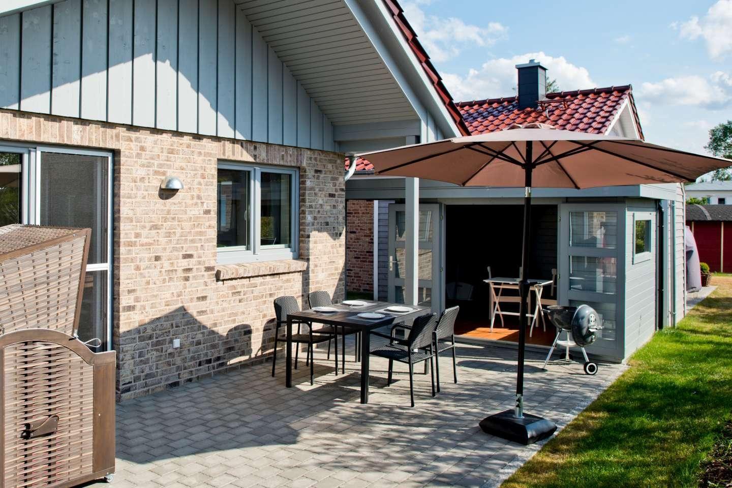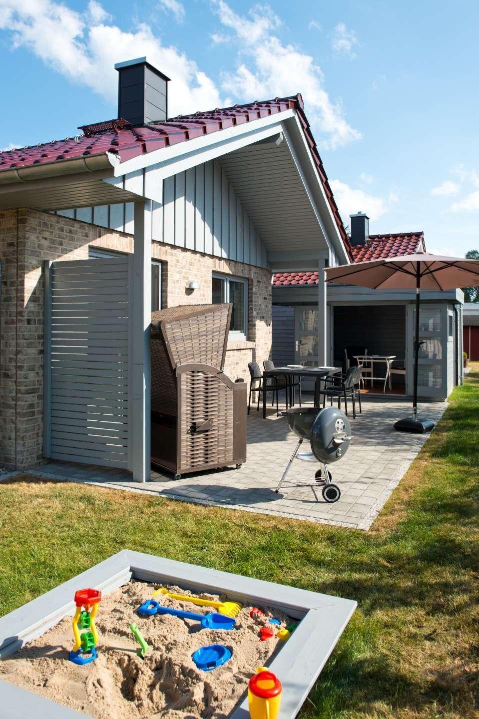 Der schöne Garten mit seiner möblierten Terrasse, einem Strandkorb, einer Sandkiste und einem Grill bietet Ihnen die perfekte Gelegenheit, sonnige Stunden im Freien zu genießen. Das Grundstück ist größtenteils eingezäunt. Die Vorderseite ist offen, da dort demnächst ein zweiter Parkplatz entsteht - schon mal eine kleine Vorfreude für Ihren Urlaub.