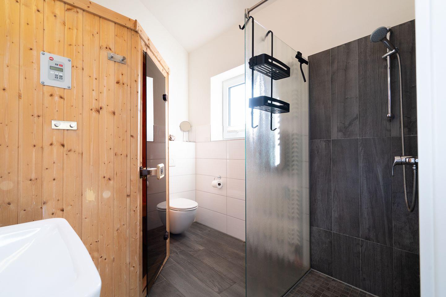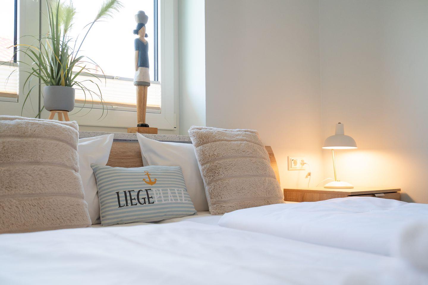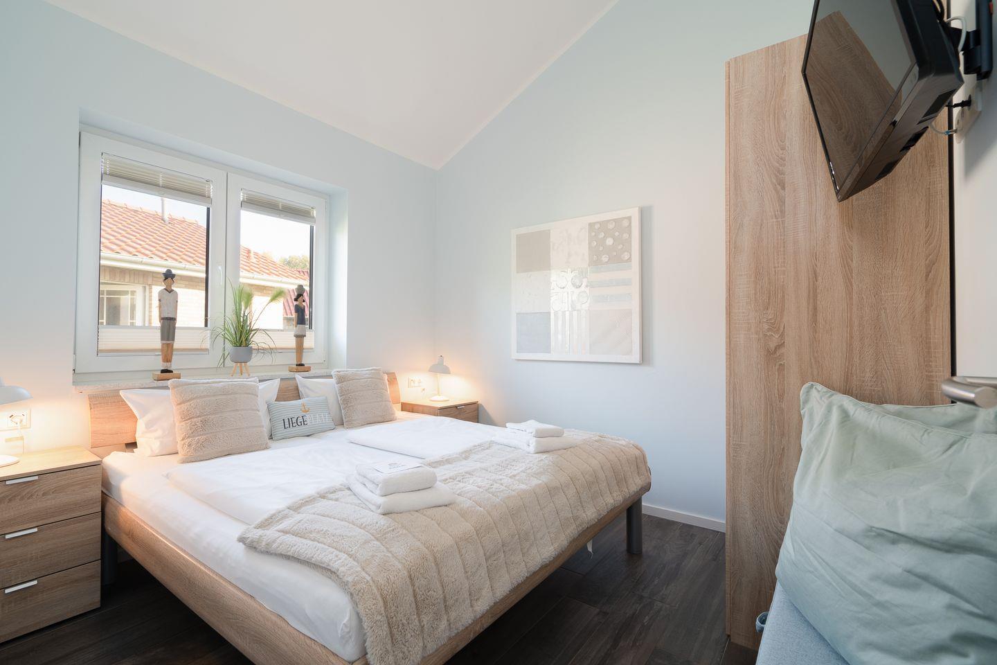 Ein heller, schöner Wohn-/Essbereich mit Kaminofen, zwei Schlafzimmer - eins mit Doppelbett und eins mit zwei Einzelbetten -, das helle Duschbad mit Sauna, sowie die moderne, reichlich ausgestattete Küche laden zum Urlauben ein.
