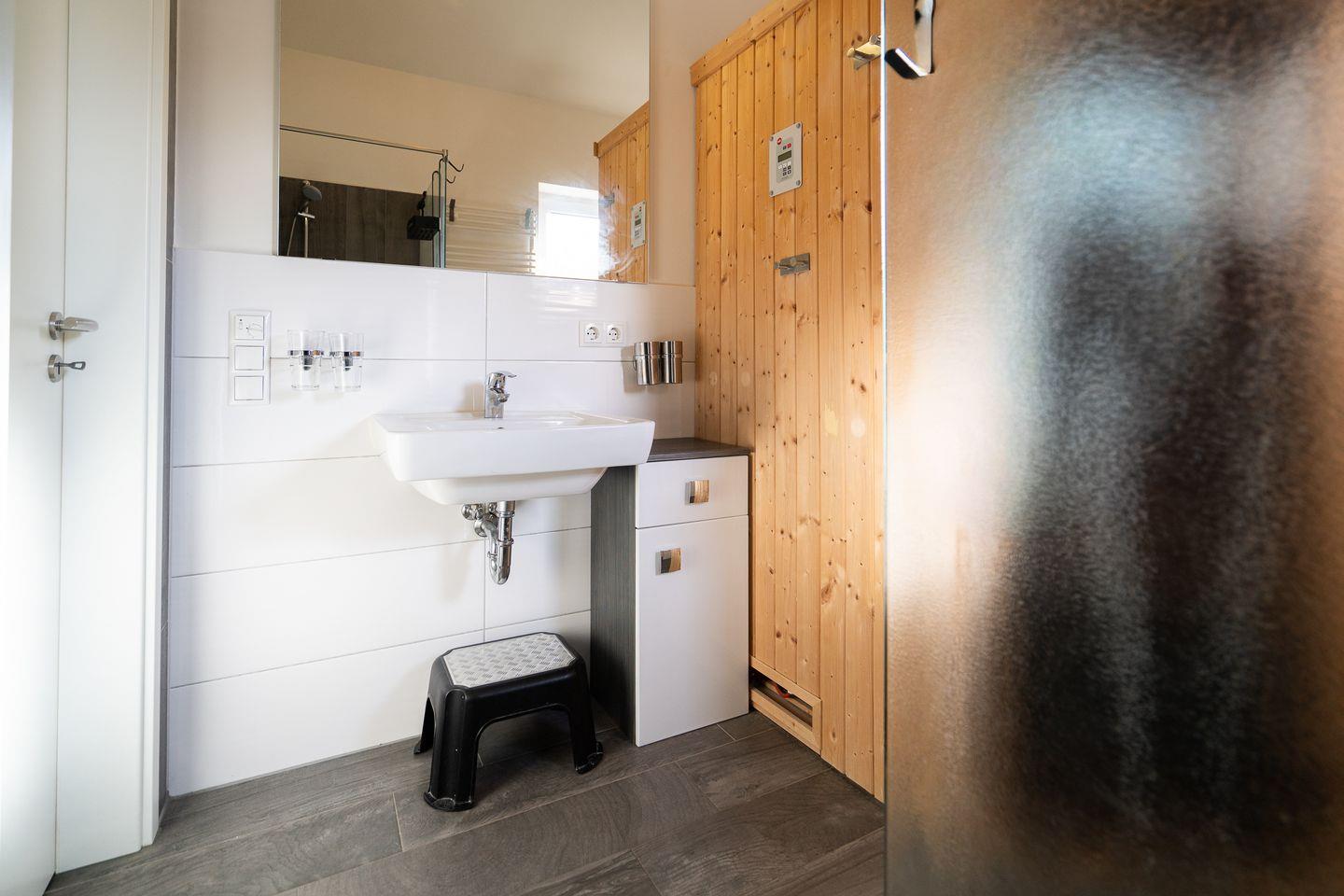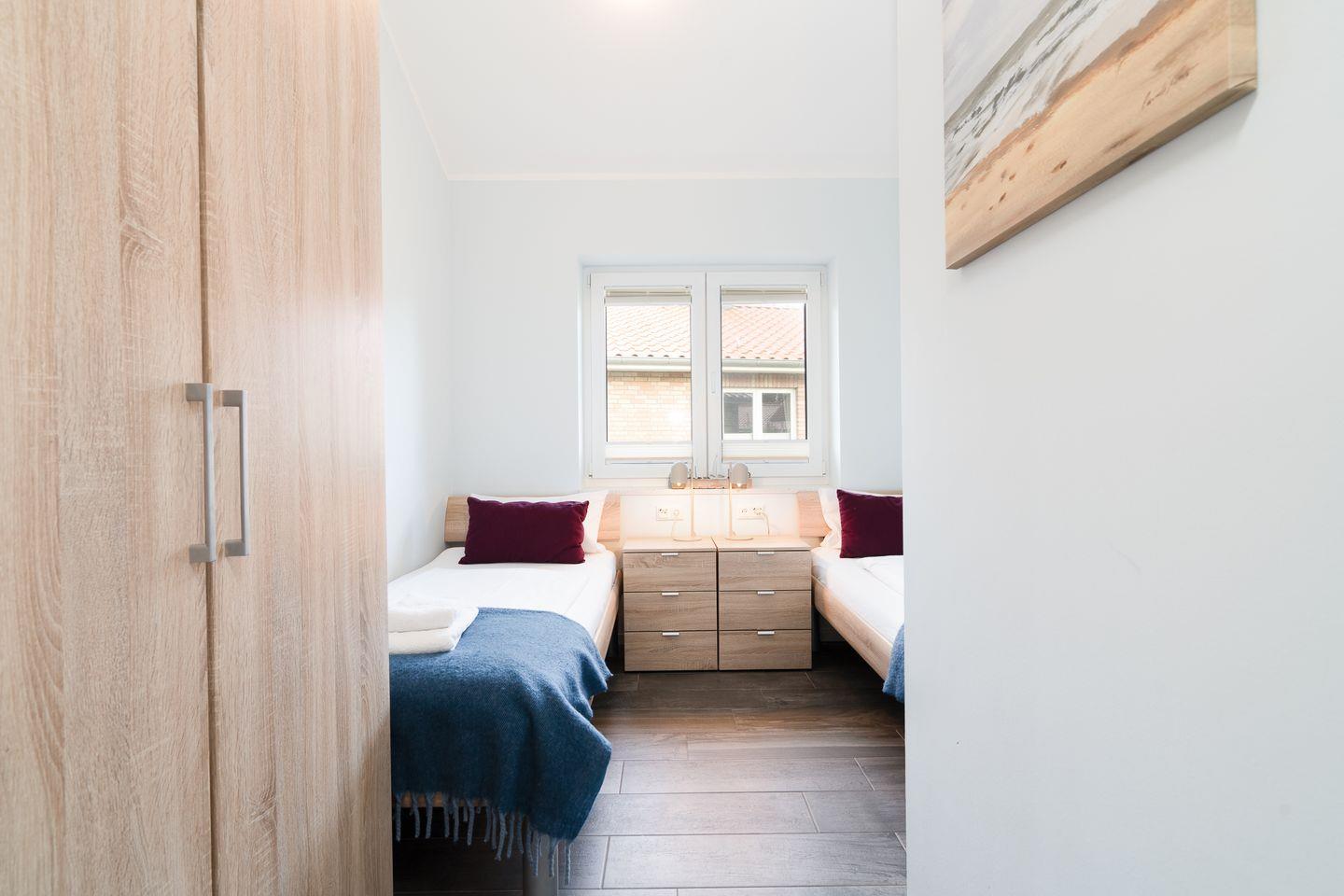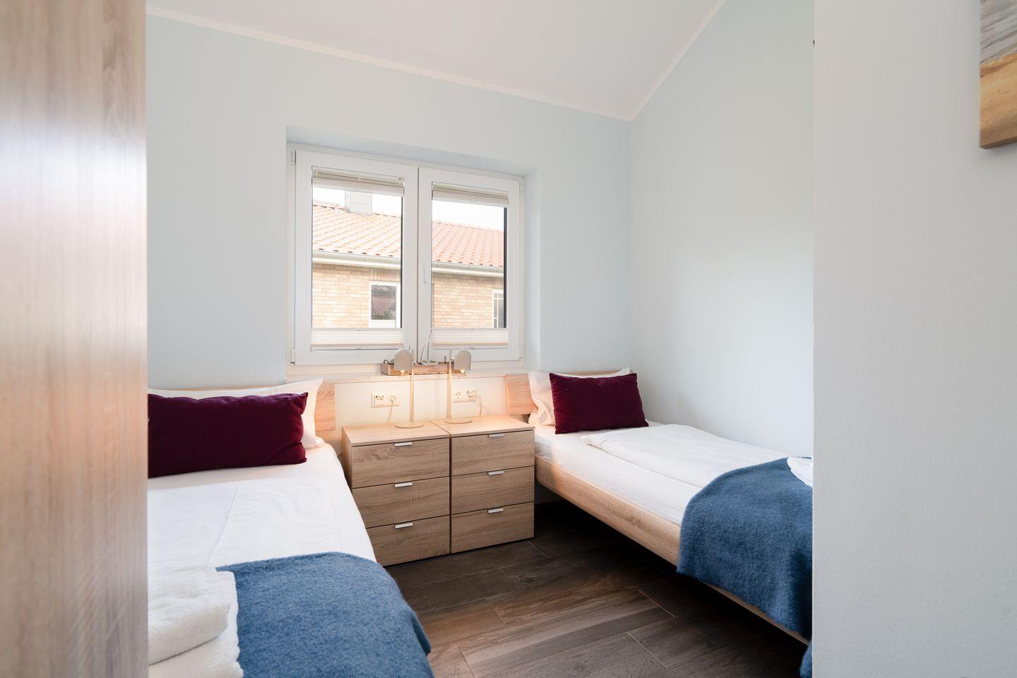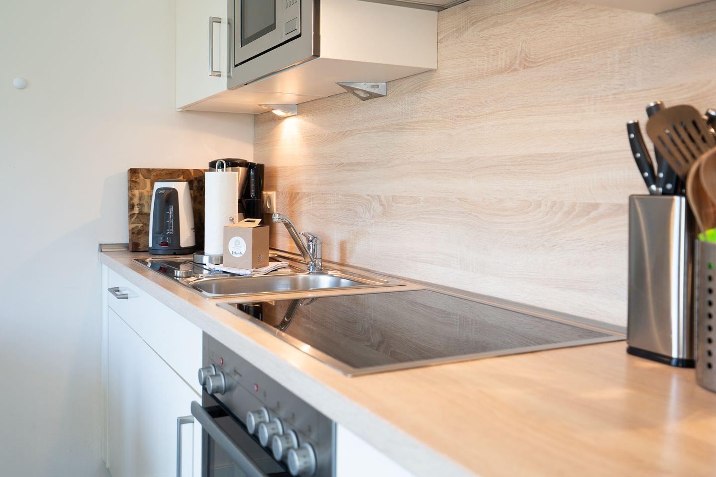 Ein heller, schöner Wohn-/Essbereich mit Kaminofen, zwei Schlafzimmer - eins mit Doppelbett und eins mit zwei Einzelbetten -, das helle Duschbad mit Sauna, sowie die moderne, reichlich ausgestattete Küche laden zum Urlauben ein.