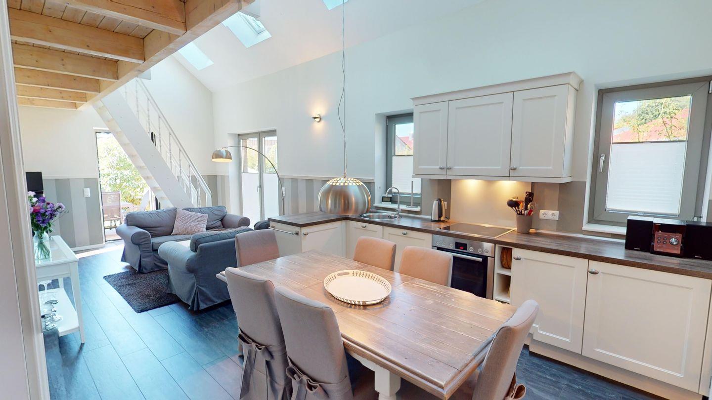 Nur wenige Gehminuten vom Strand entfernt liegt dieses besondere 80 m² große Ferienhaus für bis zu 6 Personen und auch Ihren Hund. Es steht Ihnen ein PKW-Stellplatz zur Verfügung.