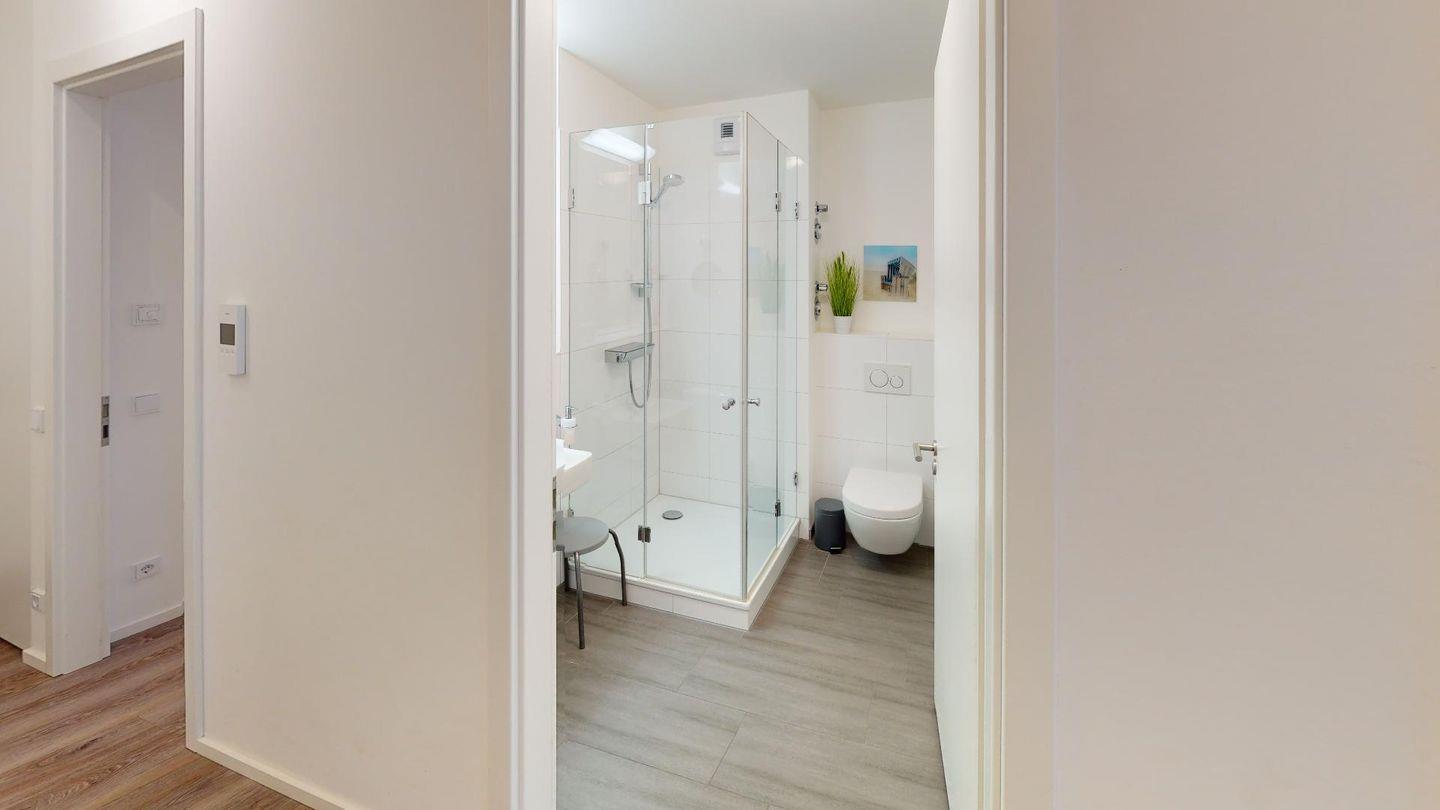 Durch die zwei Schlafzimmer können bis zu vier Personen hier einen entspannten Urlaub verbringen. Eines der Schlafzimmer ist mit einem komfortablen Boxspringbett-Doppelbett, einem großen Kleiderschrank und einem Flat-TV eingerichtet und hat ein eigenes Bad mit Badewanne. Das zweite Schlafzimmer verfügt über ein Einzelbett mit ausziehbarem "Kojenbett" sowie einem großen Kleiderschrank. Ein zusätzliches Duschbad bietet großen Komfort.