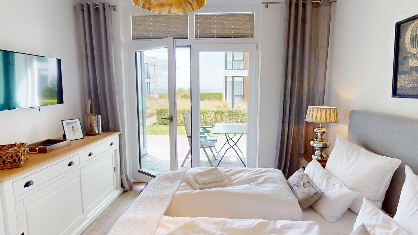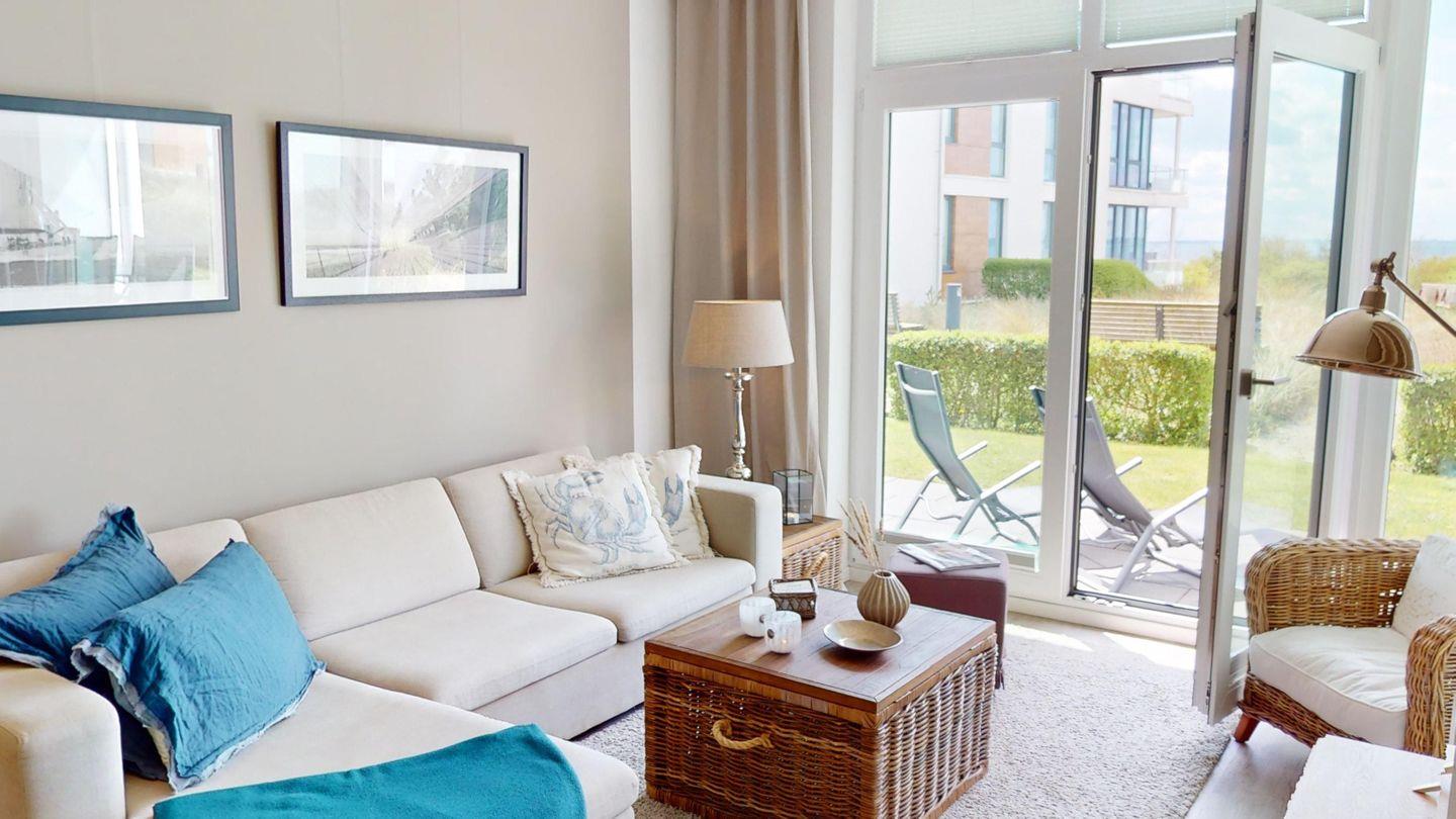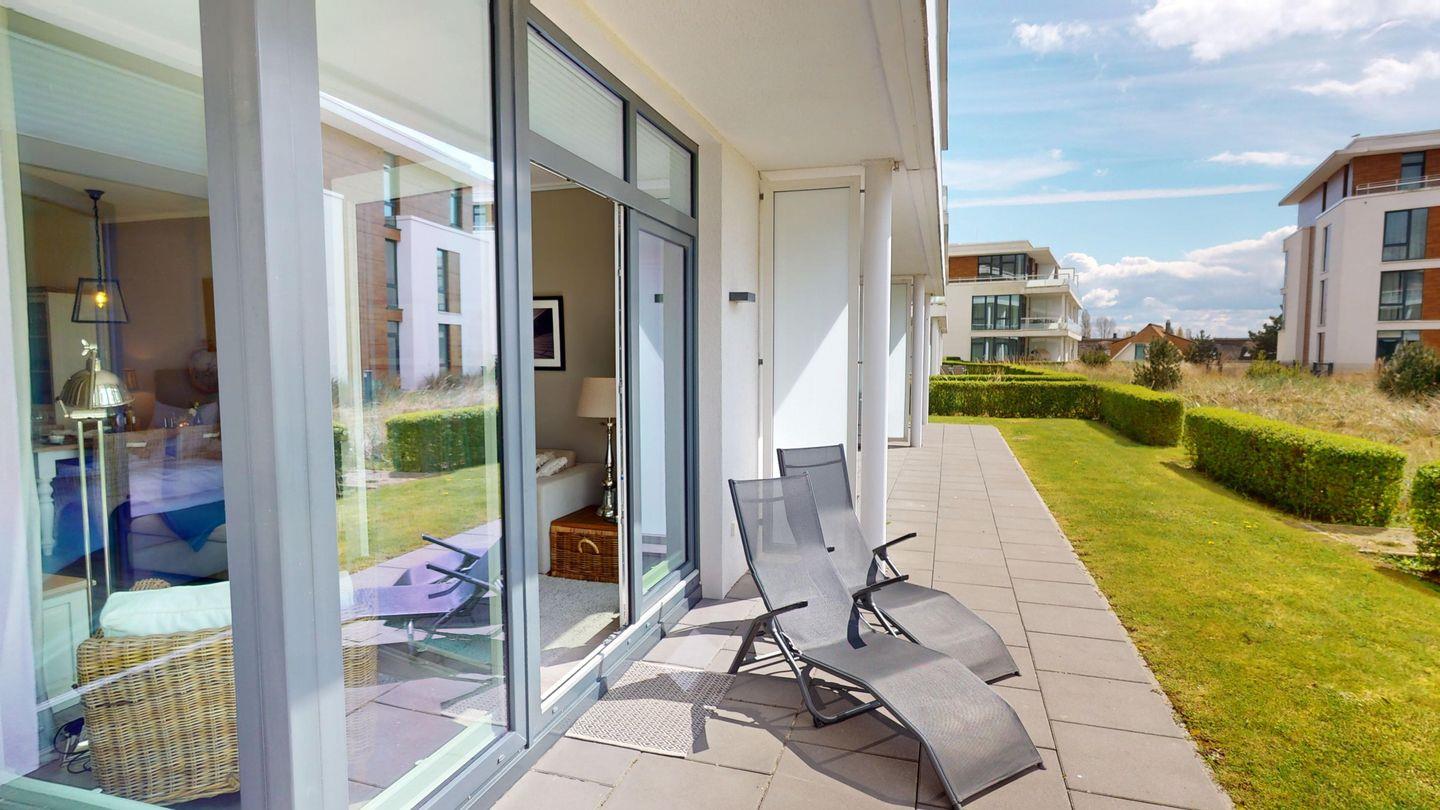 Moderne, strandnahe Ferienwohnung im Südkap Pelzerhaken mit möblierter Terrasse und eingeschränktem Meerblick für 4 Personen
