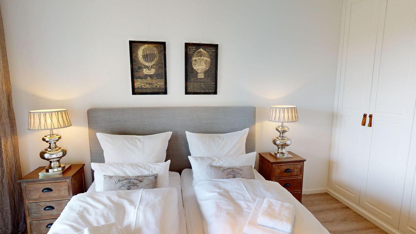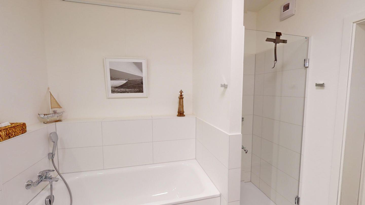 Das Schlafzimmer verfügt über ein gemütliches Boxspring-Doppelbett, während im Wohnzimmer ein Schlafsofa für zwei weitere Personen bereit steht. Im Badezimmer finden Sie sowohl eine Badewanne als auch eine separate Dusche.