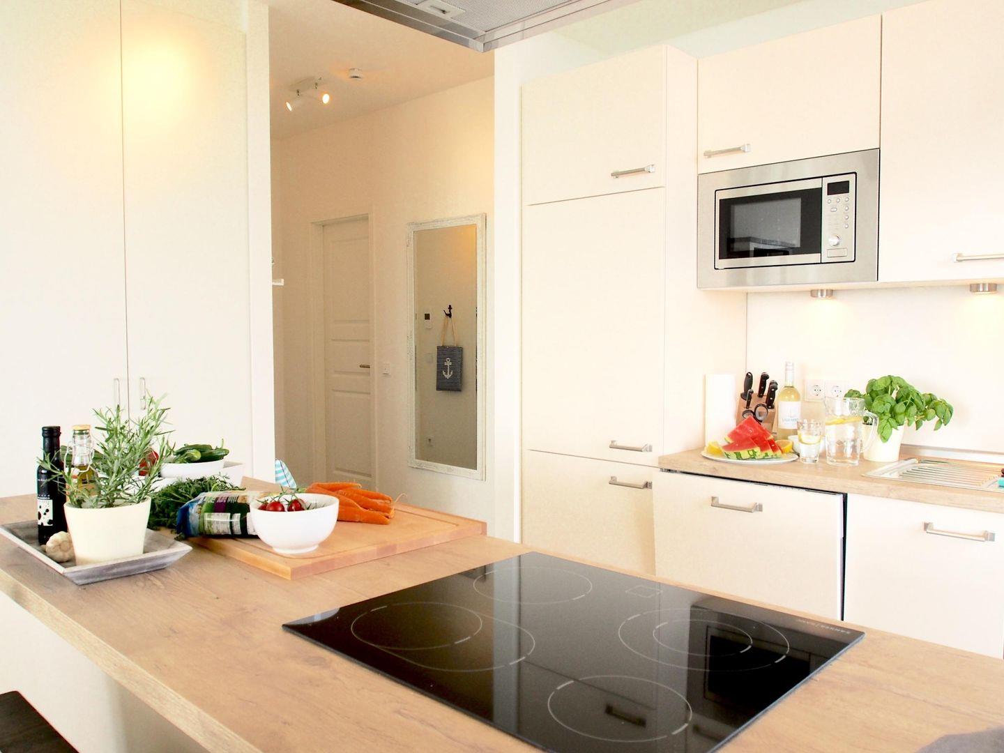 Ein großzügig geschnittenes Wohnzimmer mit komfortabler Schlafcouch für zwei Personen, ein Ess-/Küchenbereich und ein Schlafzimmer mit Boxspring-Doppelbett machen den Urlaub perfekt. Weiterhin gibt es ein Badezimmer mit Dusche und Badewanne.