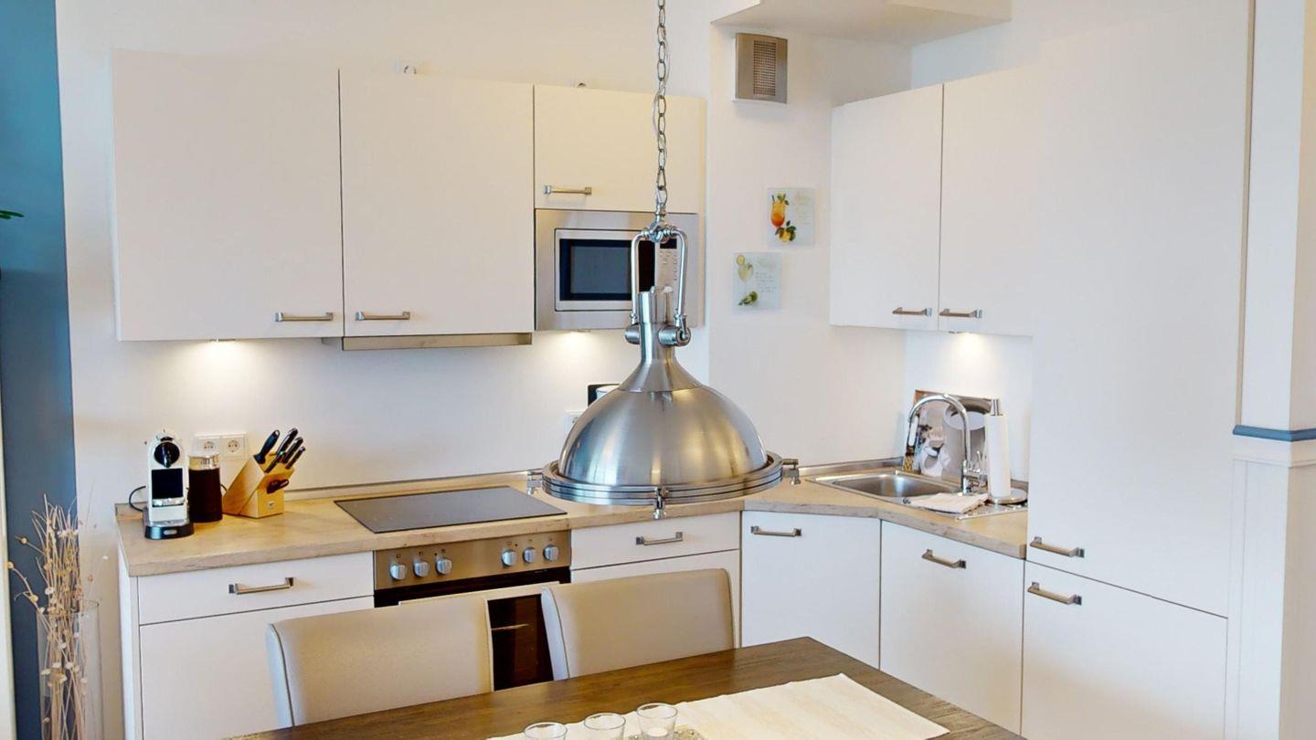 Ein heller Wohn- und Essbereich sowie eine offene, optimal ausgestattete Küchenzeile mit Nespresso-Kaffeeautomat heißen Sie willkommen. Darüber hinaus verfügt die Wohnung über ein Schlafzimmer mit einem Boxspring-Doppelbett sowie ein Vollbad mit Dusche und Badewanne.