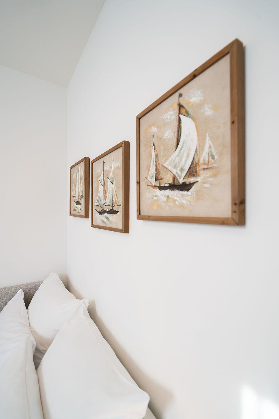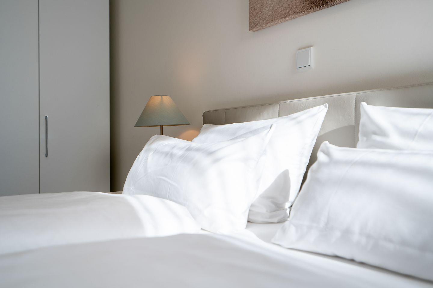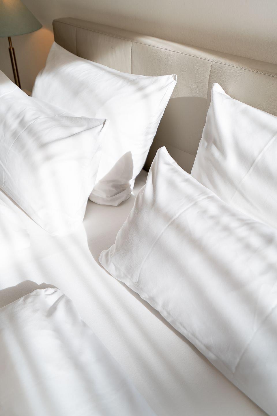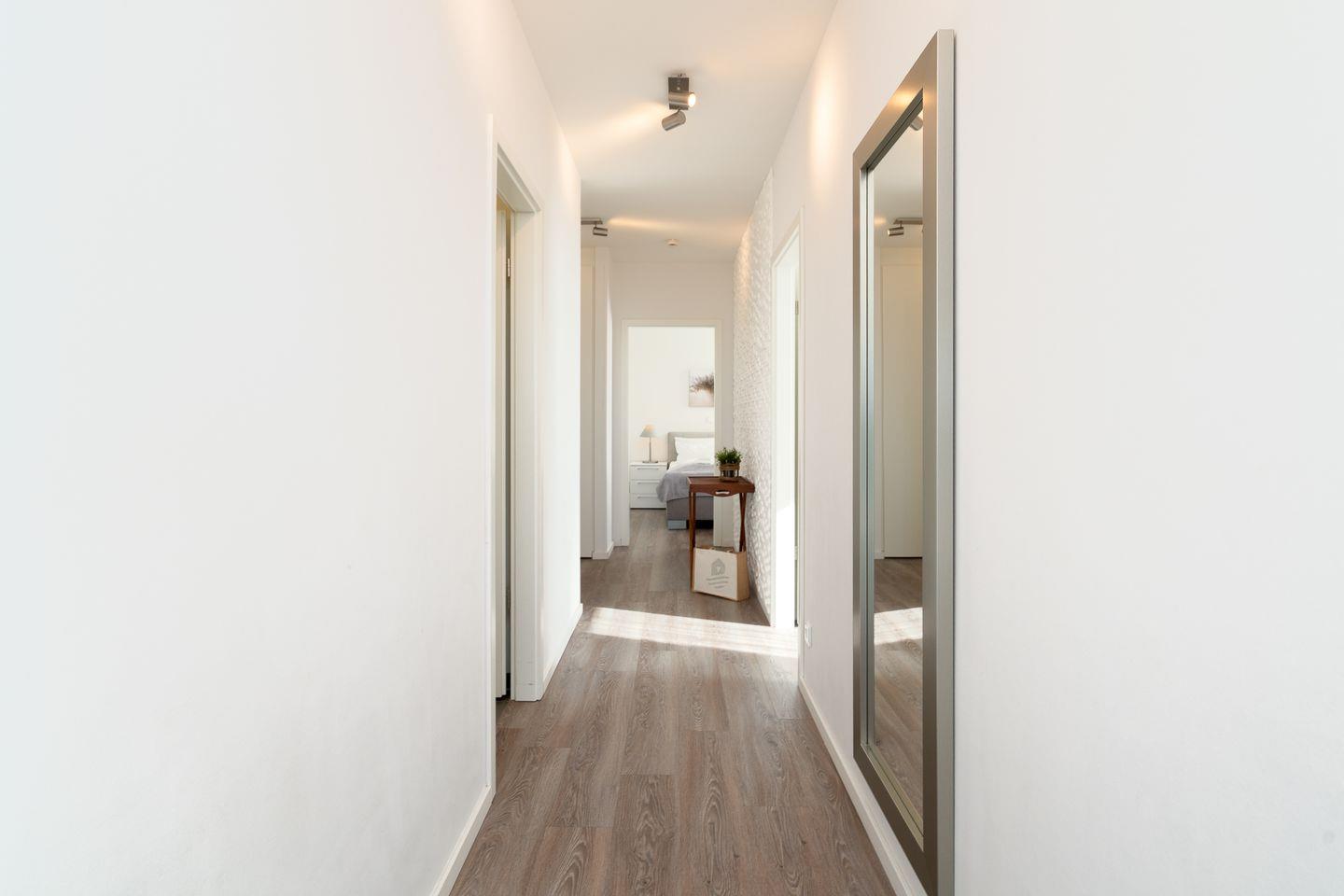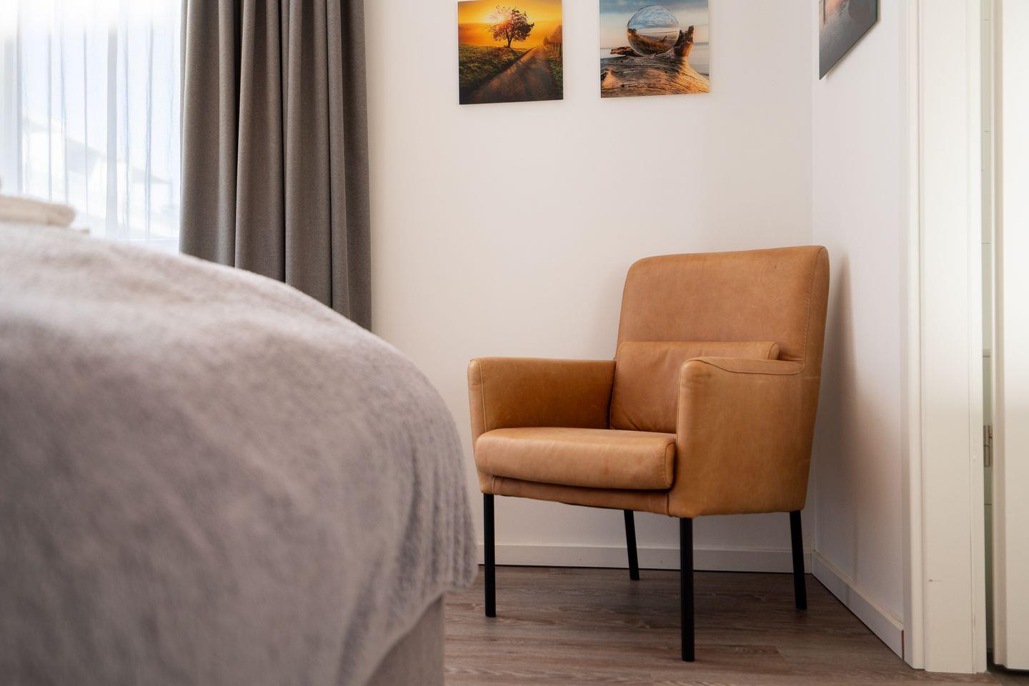 Der einladende Flur mit Garderobe und großem Spiegel führt Sie linkerhand direkt in das erste der beiden hellen und freundlichen Schlafzimmer. Die Ausstattung besteht aus einem Boxspring-Doppelbett, einem Kleiderschrank und einem Flachbildfernseher. Von hier aus gelangen Sie außerdem in das Vollbad mit Wellnessfaktor.