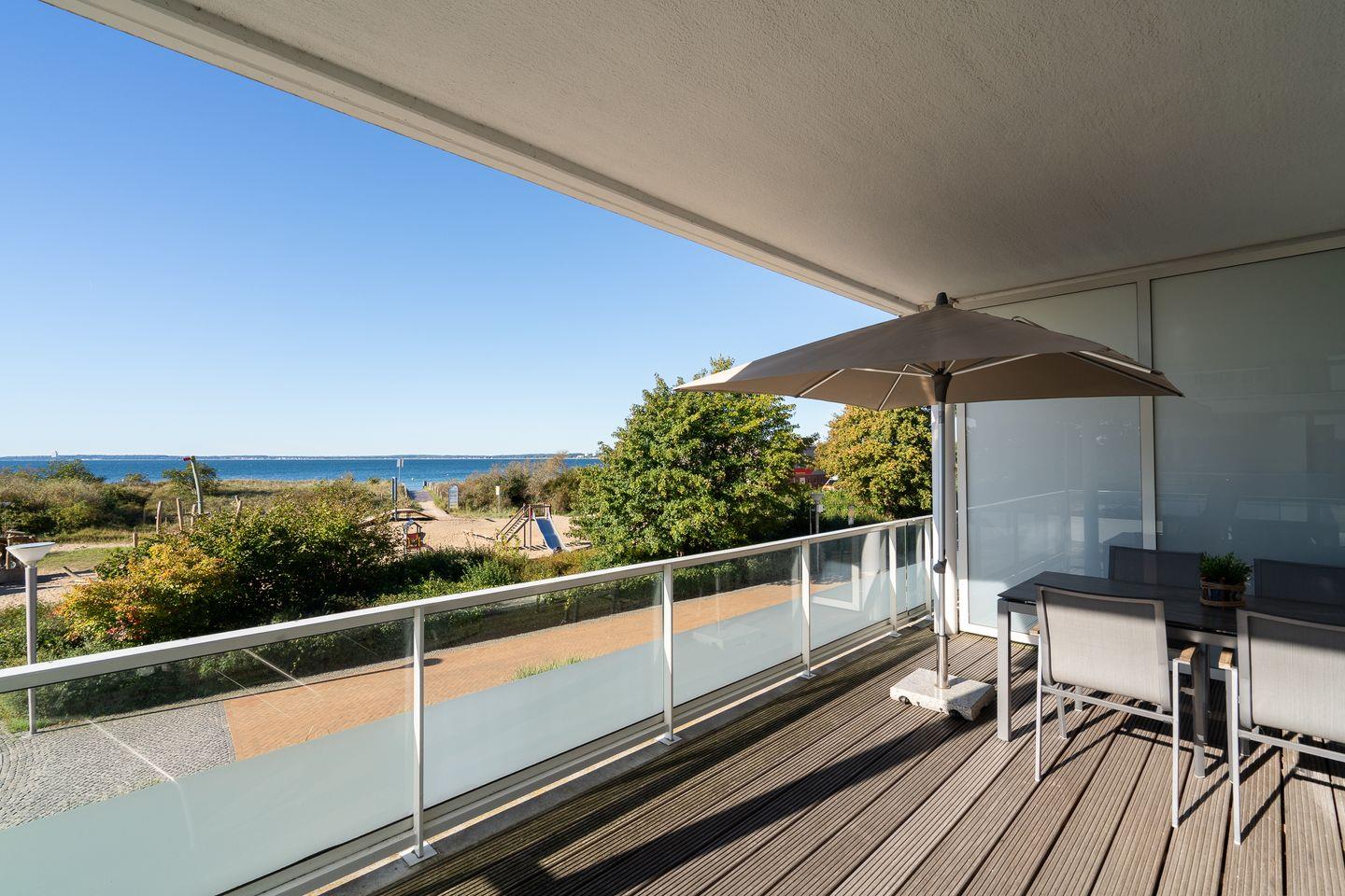 Die 3-Zimmer-Wohnung ist für 4 Personen ausgelegt. Vom Balkon aus genießen Sie einen Meerblick über die Lübecker Bucht. Der Strand ist direkt vor der Haustür.