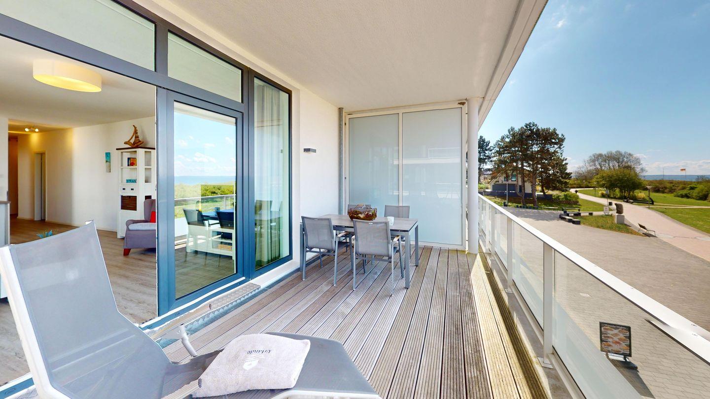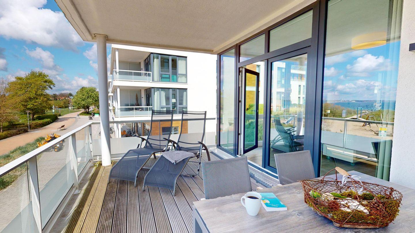 Moderne Ferienwohnung mit Meerblick und Balkon in erster Strandreihe von Pelzerhaken.