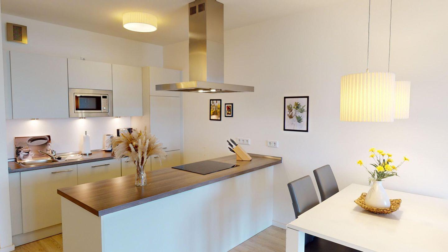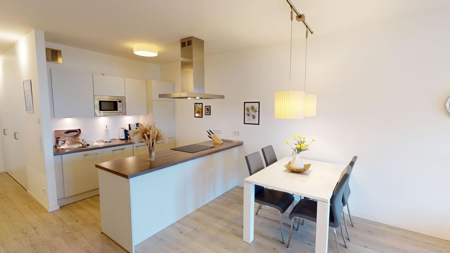 Das 70 m² große 2-Zimmer Apartment befindet sich im 1. Obergeschoss des Hauses G. Es ist für eine Belegung mit 3 Personen ausgelegt, auch Ihr Hund ist herzlich willkommen.