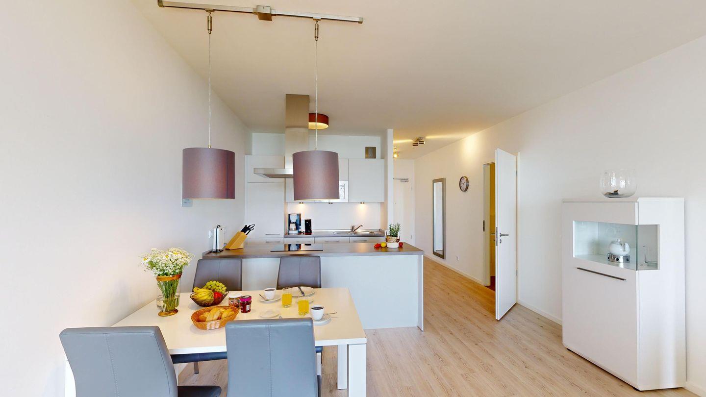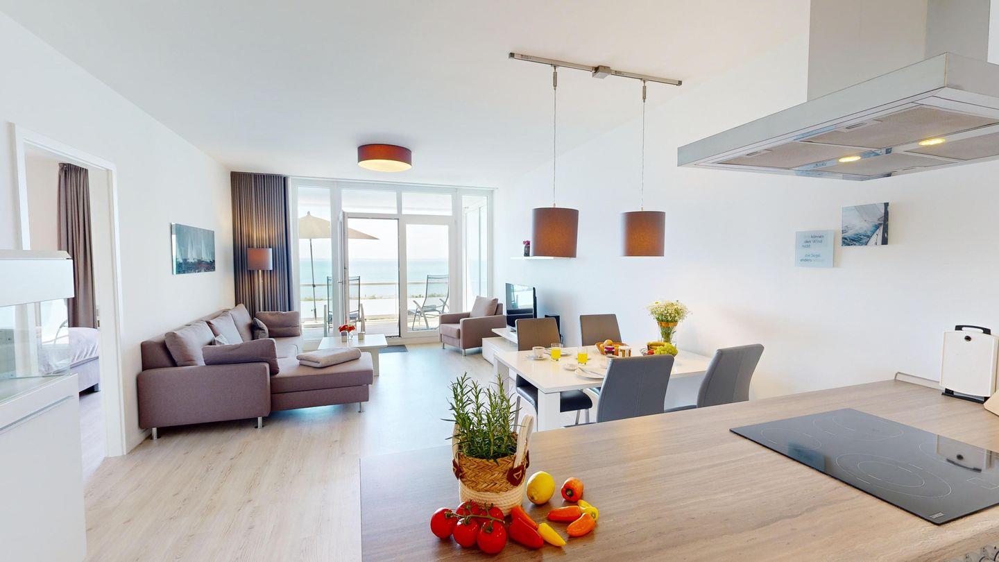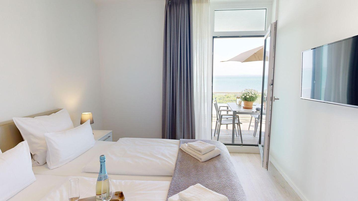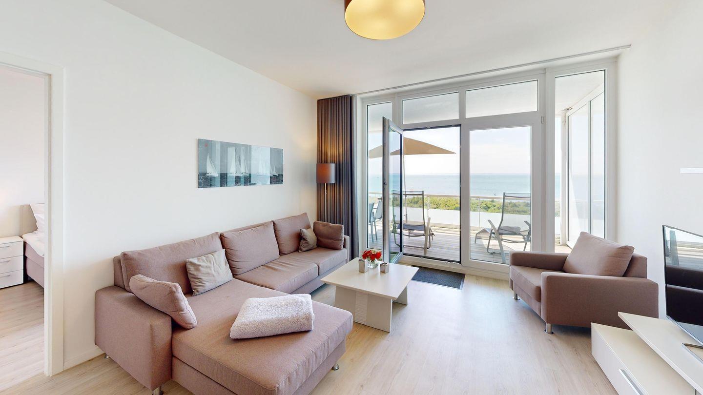 Die Lage im dritten Stock verspricht einen herrlichen Meerblick über die Ostsee. Diese Wohnung ist perfekt geeignet für bis zu vier Gäste.