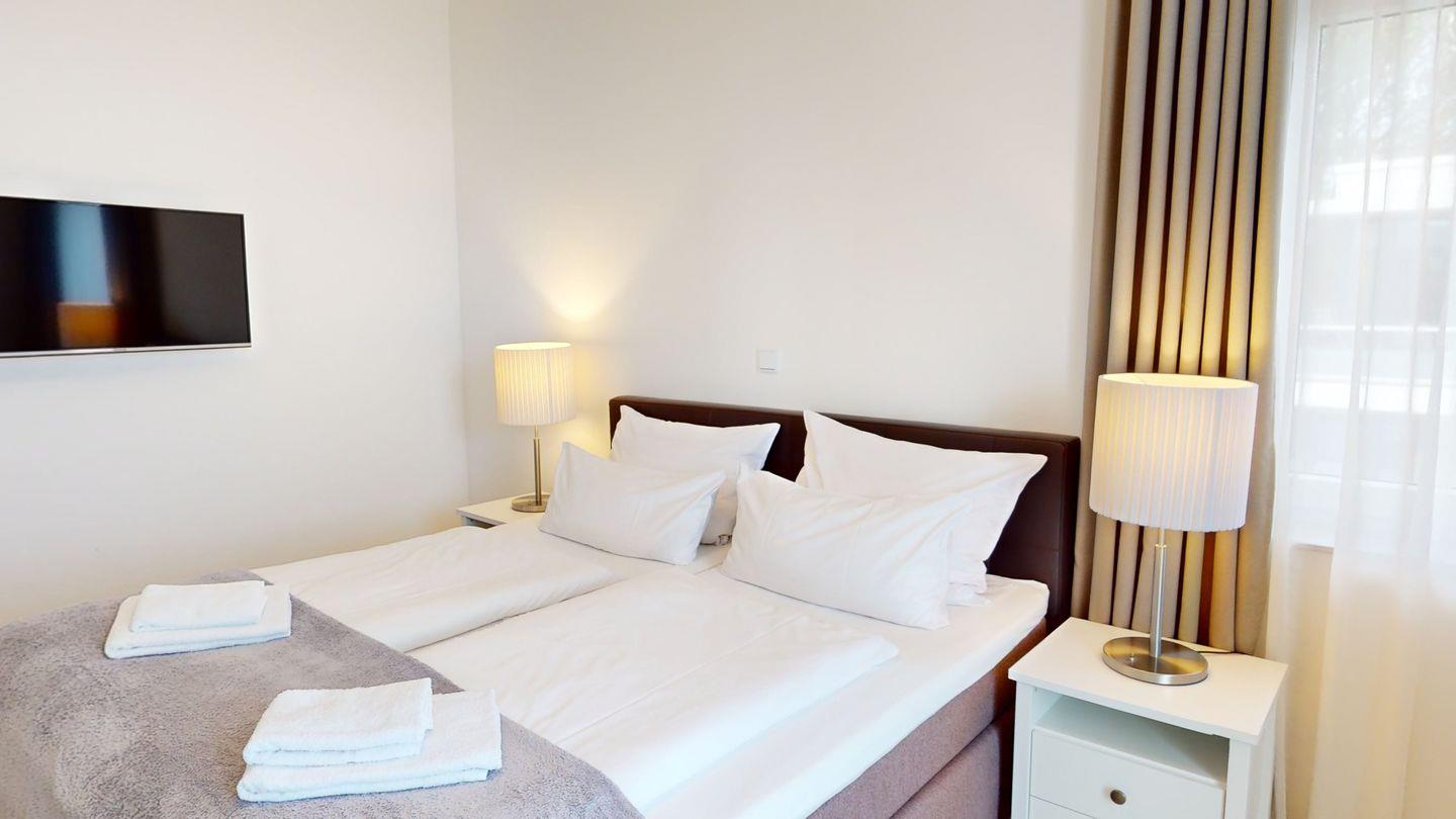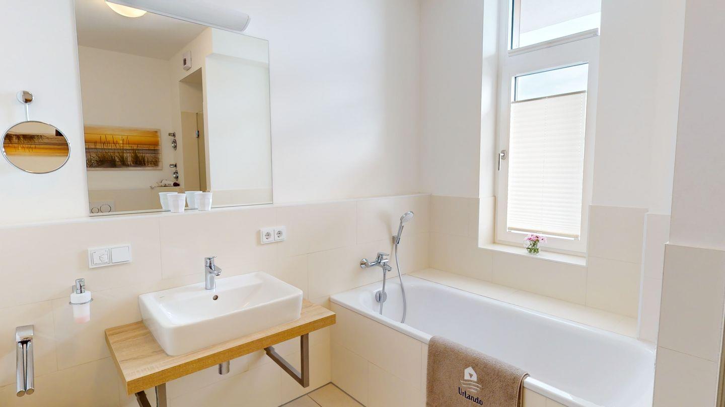 Die Penthouse-Wohnung E-08 bietet auf 80 m² besten Komfort für den Urlaub zu zweit. Von der Dachterrasse aus überschauen Sie die Lübecker Bucht von Travemünde bis Neustadt. Das Penthouse-Apartment erstreckt sich über ein großes Wohnzimmer mit Ess- und Küchenbereich, ein Schlafzimmer mit Doppelbett und einem komfortablen Bad mit Badewanne und Dusche. Zur Wohnung gehört ein Stellplatz in der Tiefgarage.