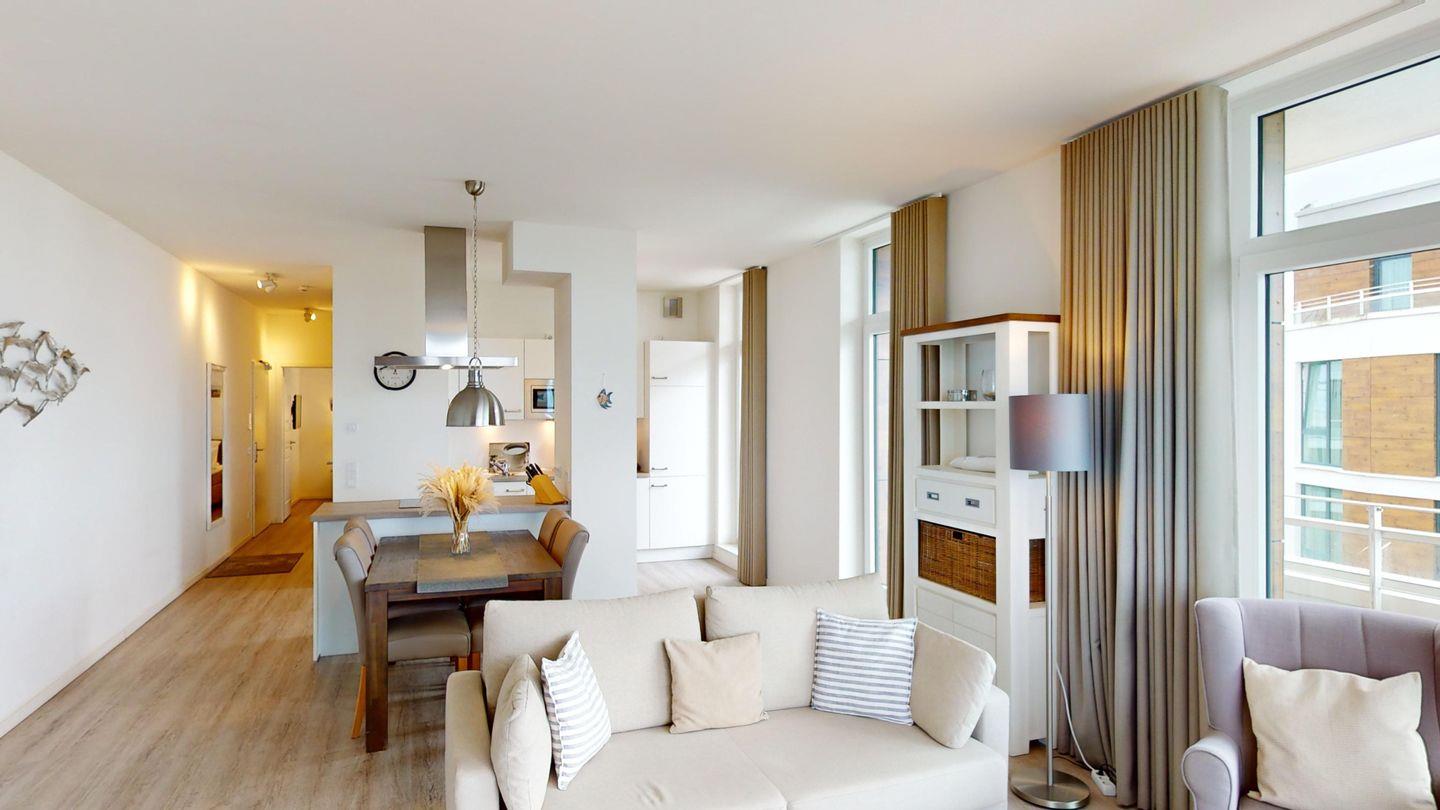 Die Penthouse-Wohnung G-08 bietet auf 80 m² besten Komfort für den Urlaub zu zweit. Von der Dachterrasse aus überschauen Sie die Lübecker Bucht von Travemünde bis Neustadt. Das Penthouse-Apartment erstreckt sich über ein großes Wohnzimmer mit Ess- und Küchenbereich, ein Schlafzimmer mit Doppelbett und einem komfortablen Bad mit Badewanne und Dusche. Zur Wohnung gehört ein Stellplatz in der Tiefgarage.