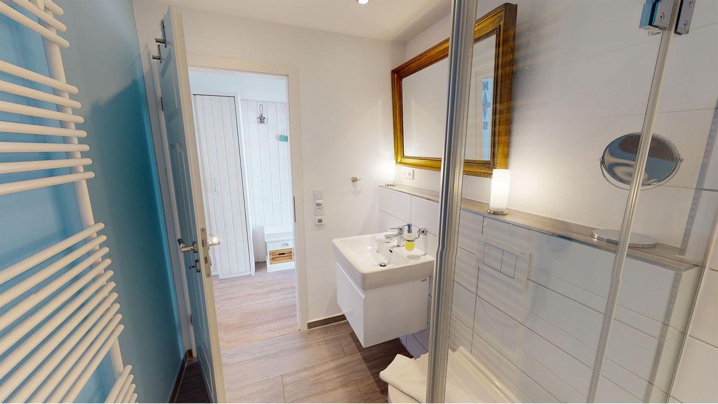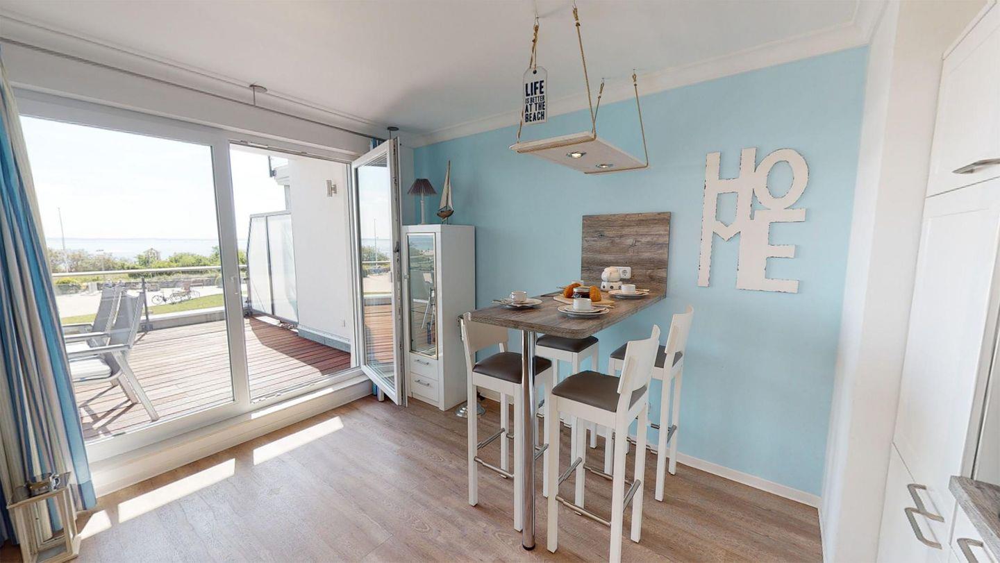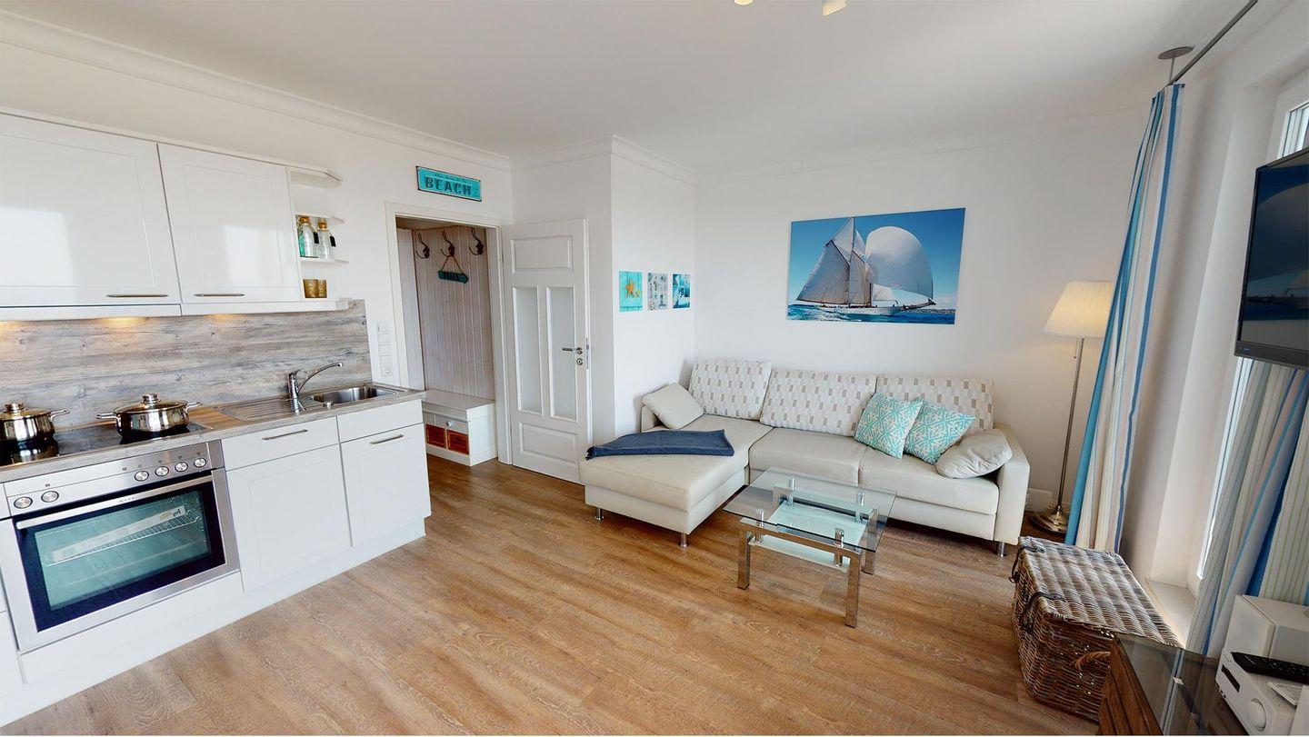 Das 53 m²-Apartment "Meerblick 6a" befindet sich im 1. OG der Villa Meeresrauschen und ist für einen Urlaub mit 4 Personen geeignet; auch ein Hund ist willkommen!