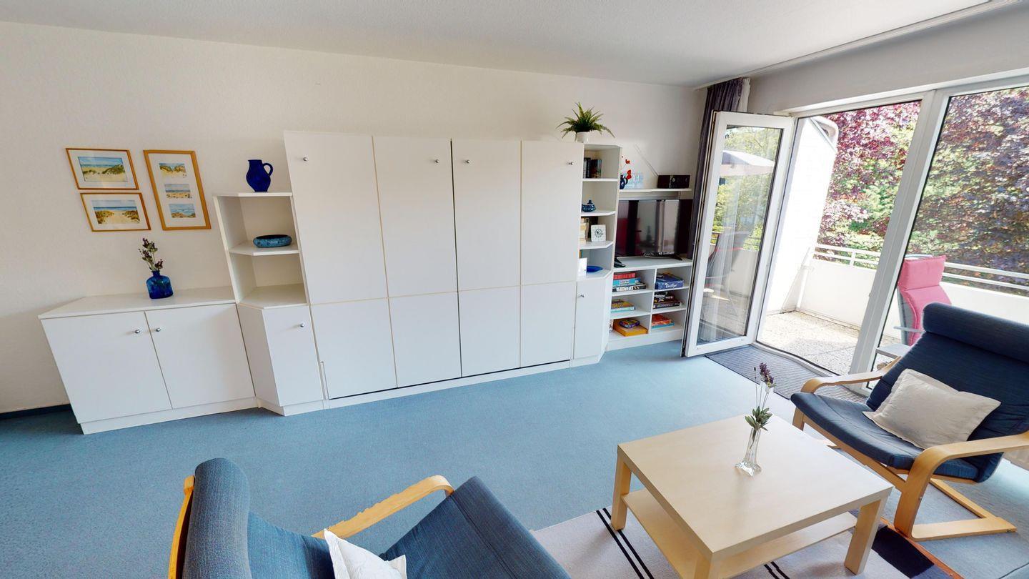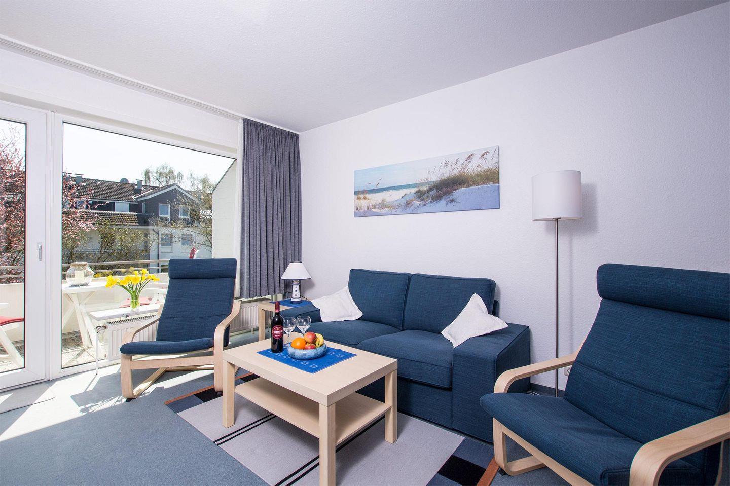 Helle 2-Zimmer-Ferienwohnung in Pelzerhaken mit Balkon und eigenem Parkplatz, ideal für einen erholsamen Urlaub am Meer.