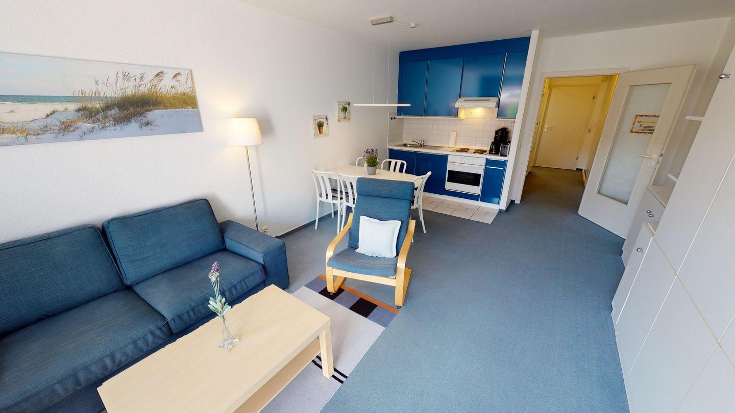Die Wohnung überzeugt mit einem hellen Wohn- und Essbereich, einer modernen, offenen Küchenzeile und einem stilvollen Badezimmer mit Dusche. Für erholsamen Schlaf stehen zwei komfortable Einzelbetten im Schlafzimmer bereit. Zusätzlich bietet eine hochwertige, ausklappbare Schlafcouch (160x200 cm) im Wohnzimmer Platz für zwei weitere Gäste – ideal für Paare, Freunde oder Familien.