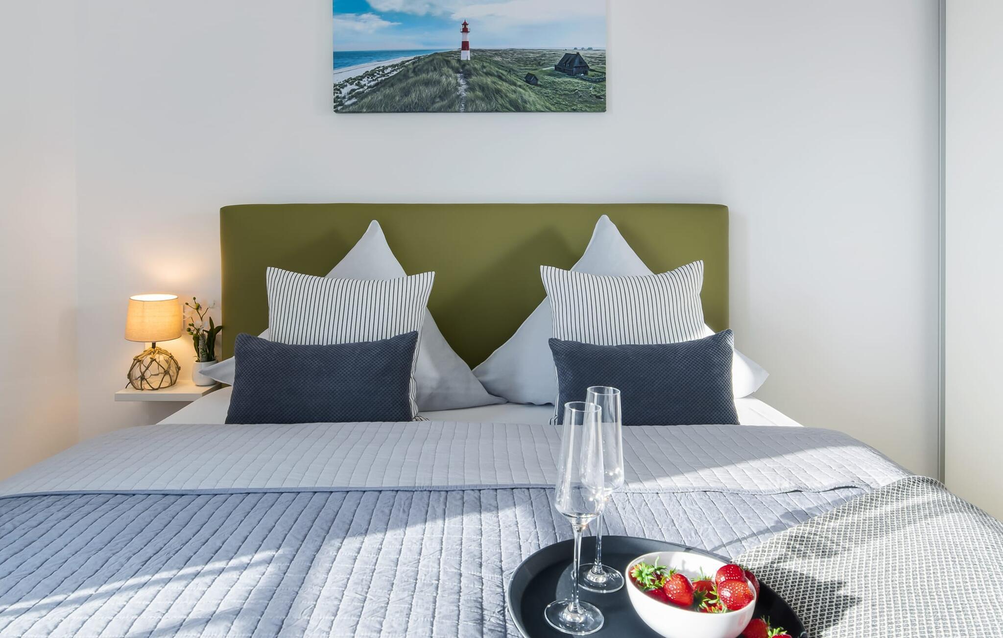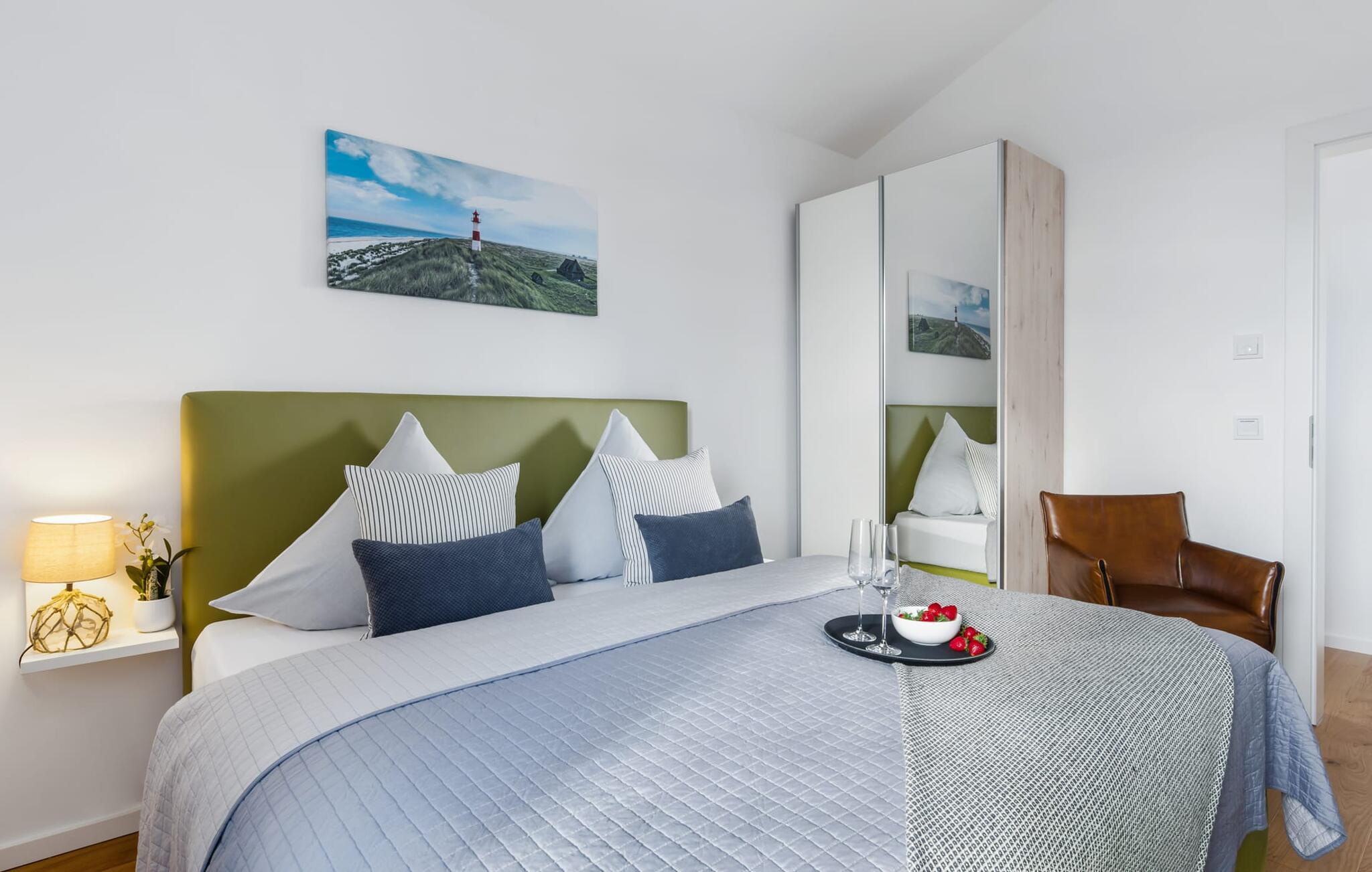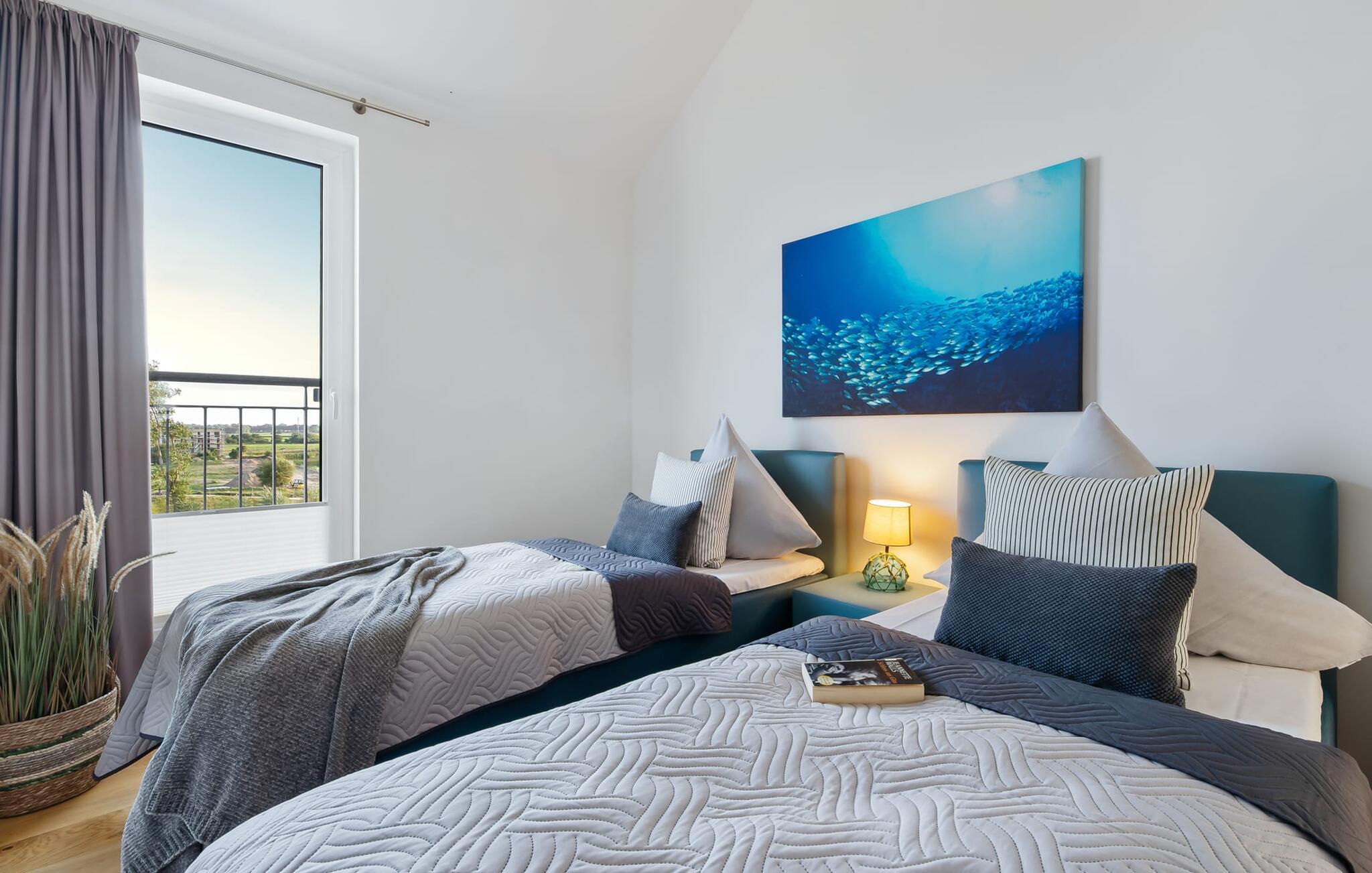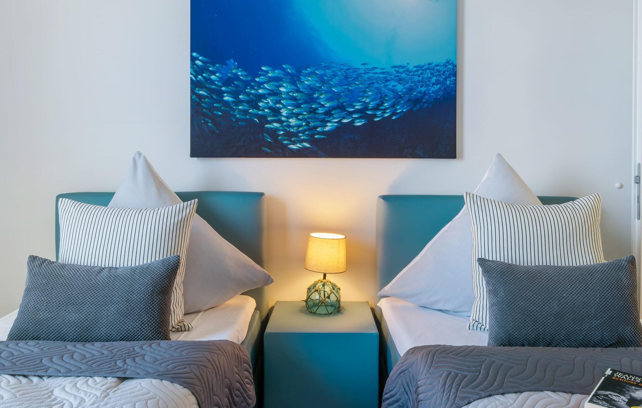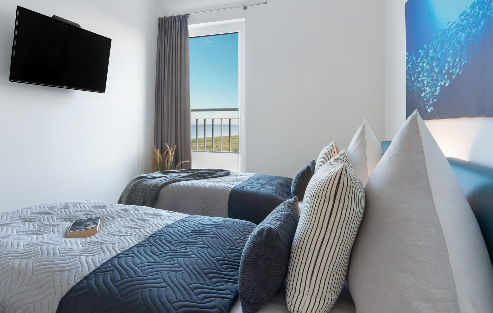 Die beiden Schlafzimmer verfügen jeweils über einen Fernseher und bodentiefe Fenster. Ihr könnt euch entscheiden zwischen einem Doppelboxspringbett oder zwei Einzelboxspringbetten. Welche Entscheidung ihr auch treffterholsamer Schlaf ist euch garantiert.