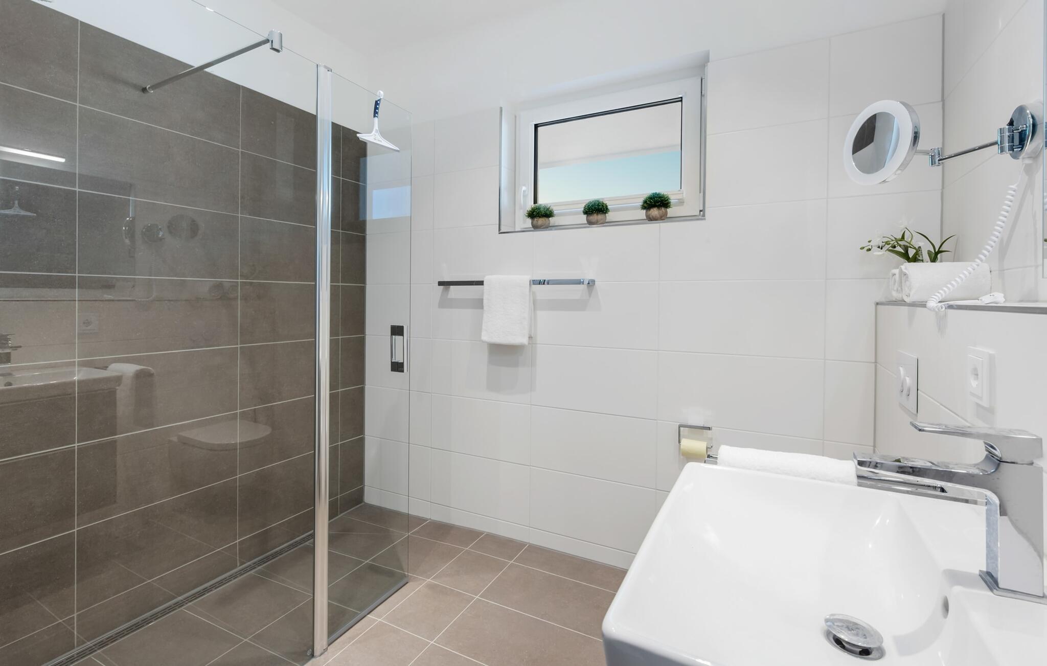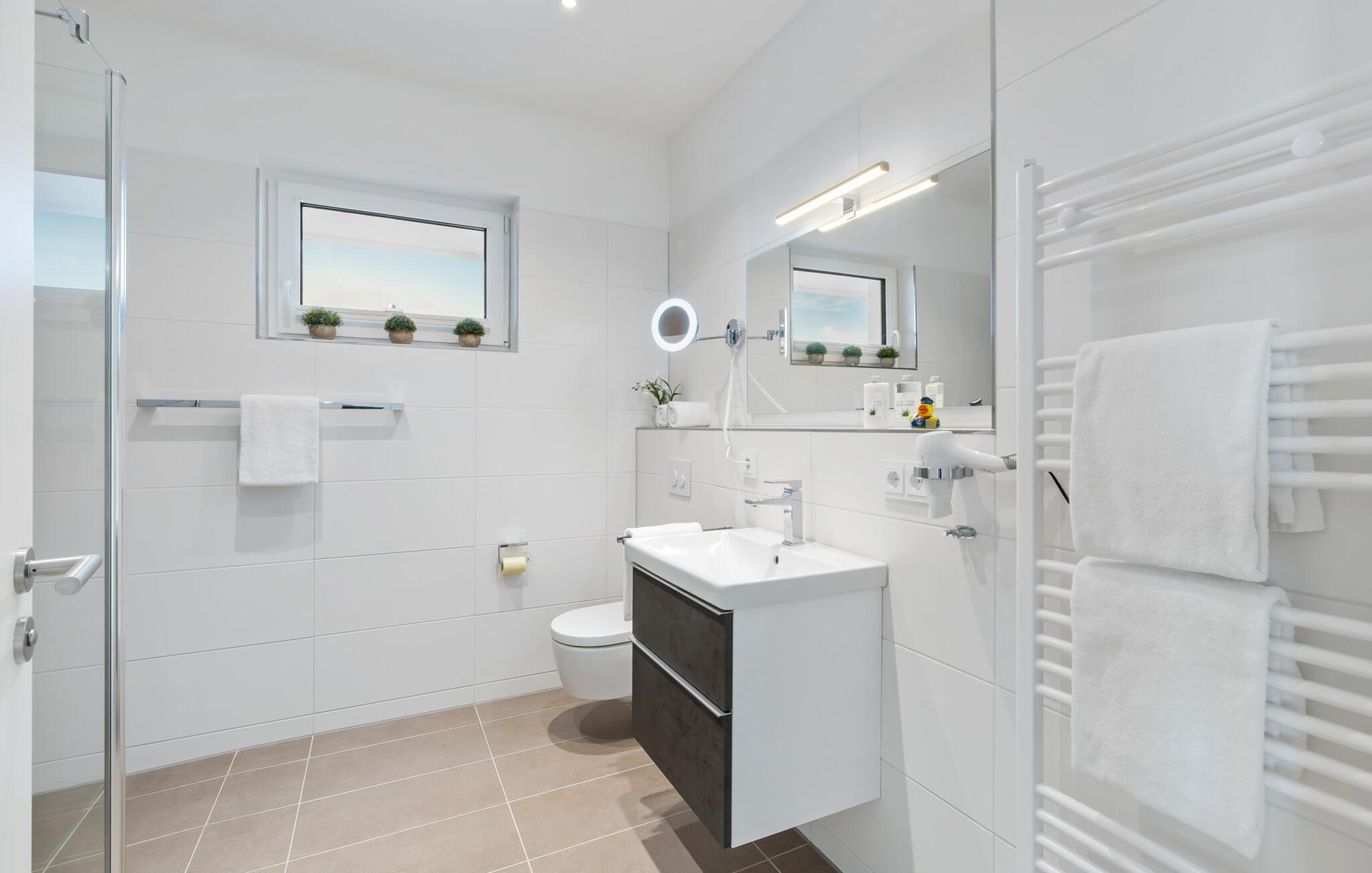 Des Weiteren sorgt das perfekt ausgestattete Bad mit seiner bodengleichen Dusche für angenehmen Komfort.
