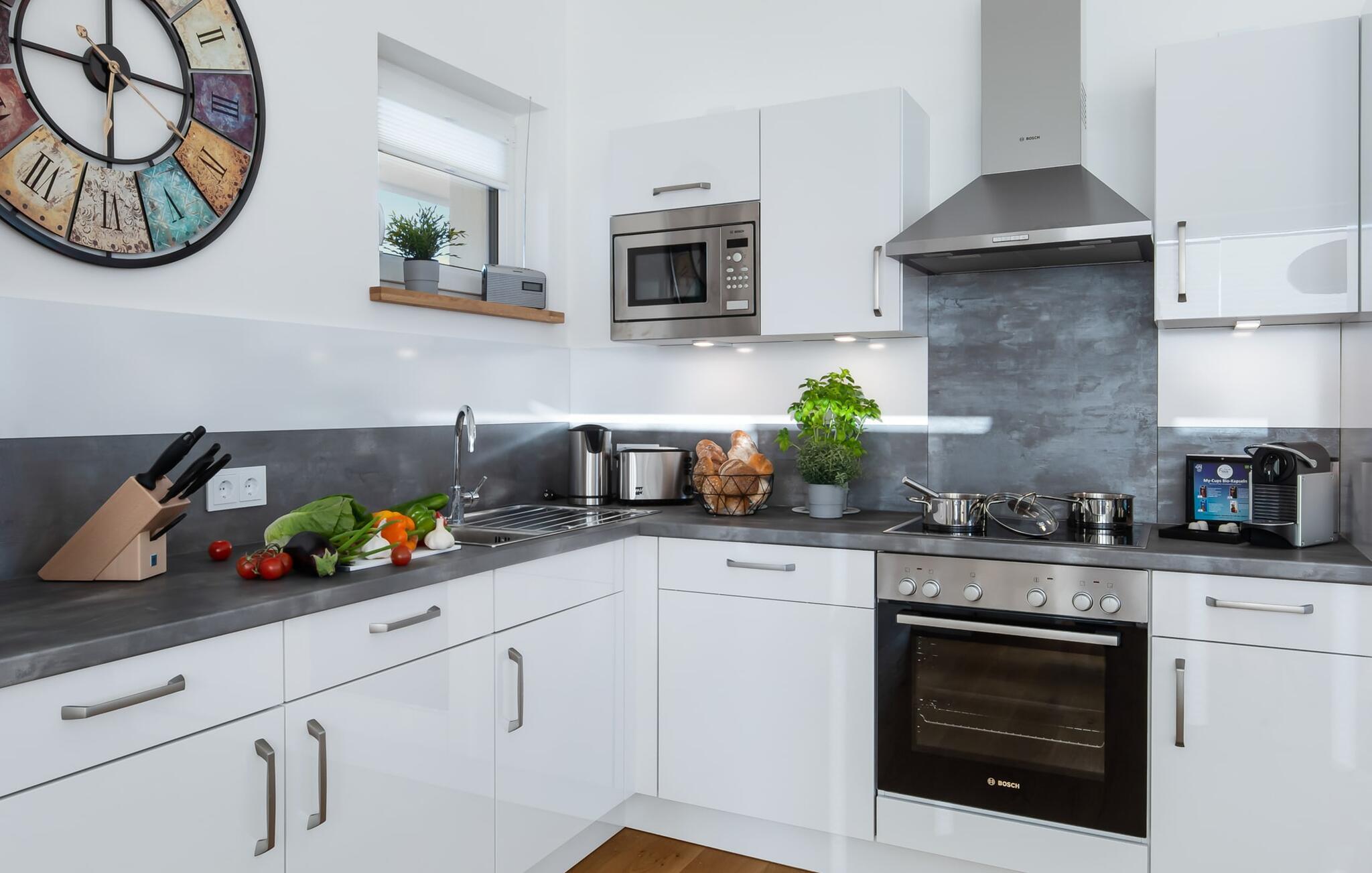 Die integrierte offene Küche ist mit allem ausgestattet, was das Kochen nicht nur erleichtert sondern glatt zum Spaßfaktor werden lässt.