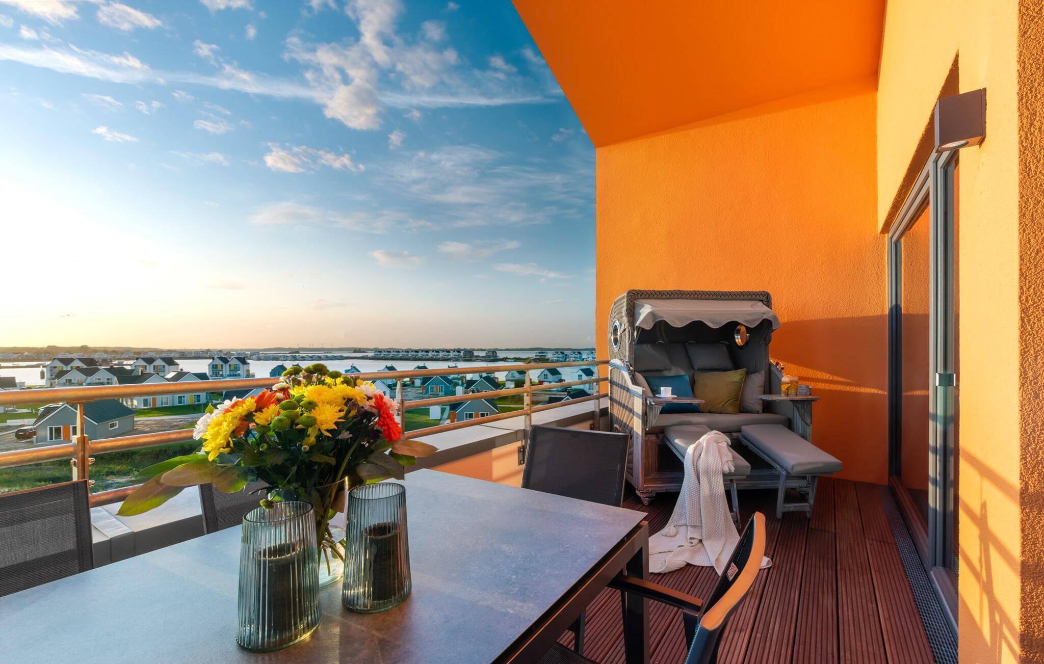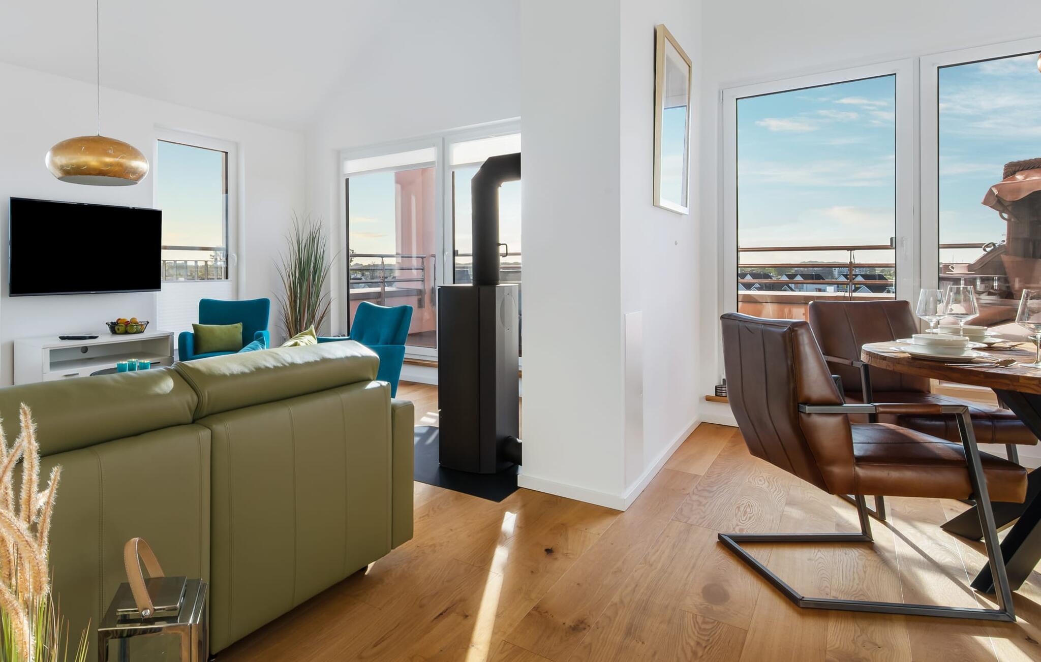 Penthouse Meerestochter bietet luxuriösen Ostseeurlaub mit Meerblick, Kamin und großer Loggia.