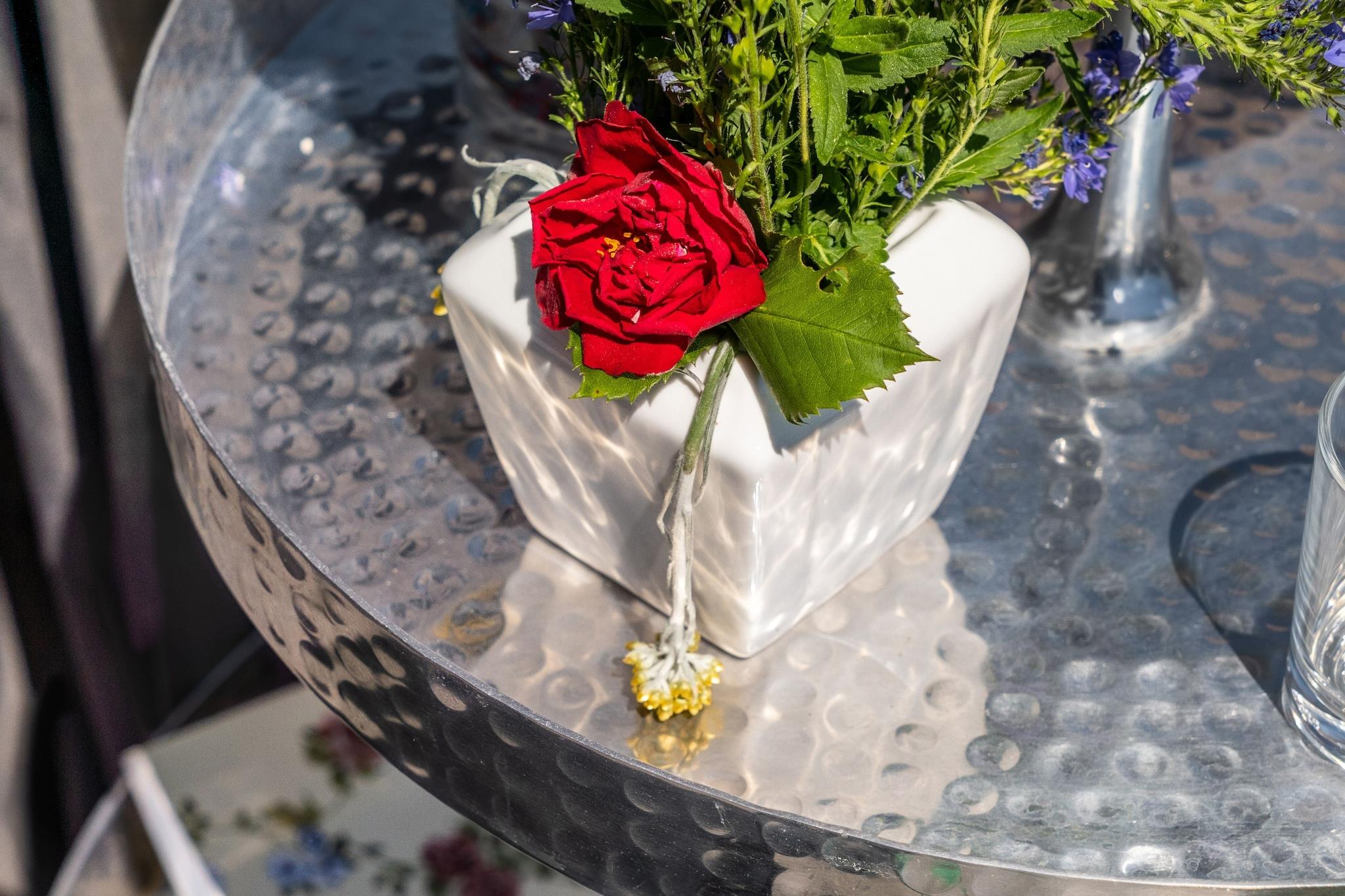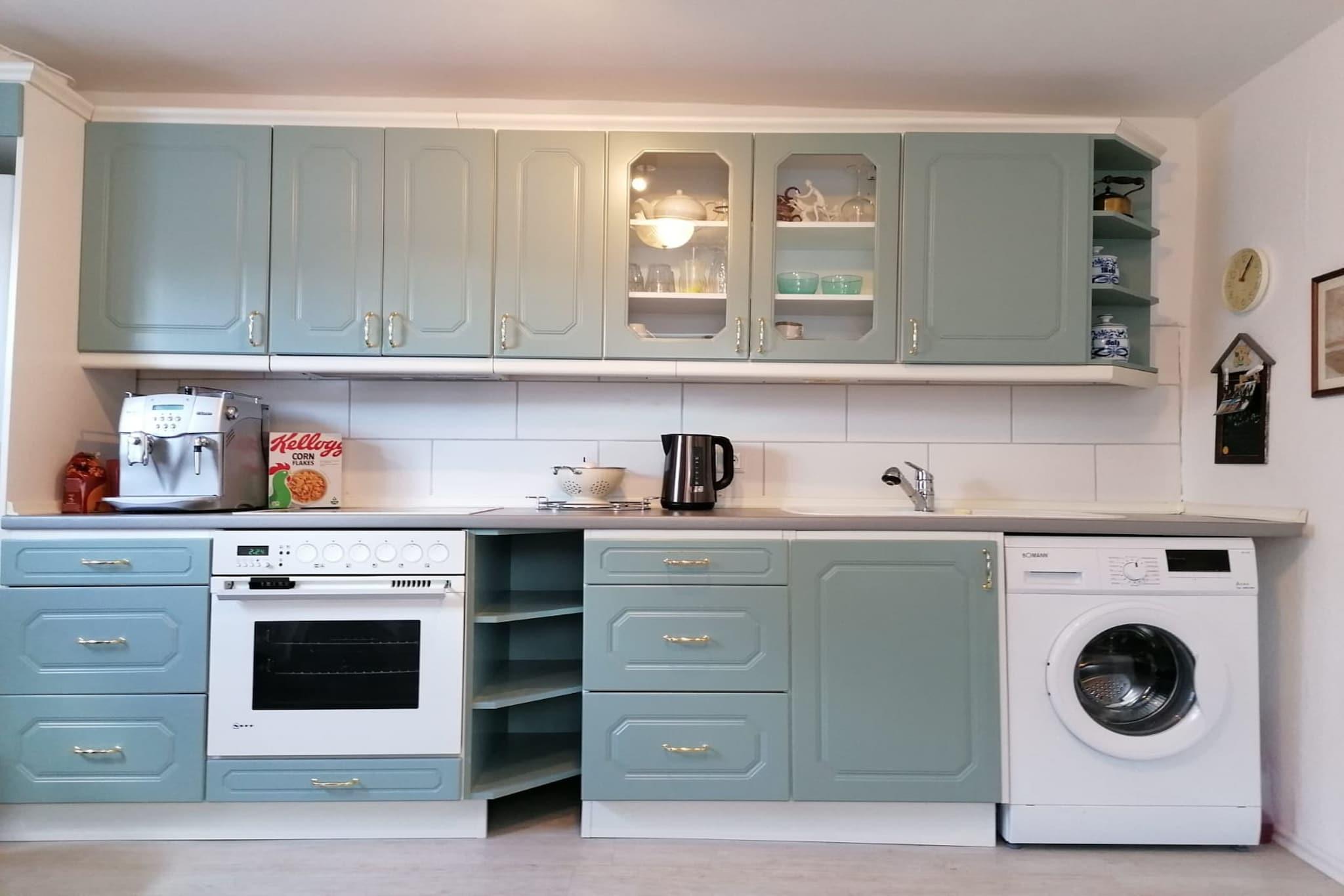 Parterre: (Wohnzimmer(Sitzecke), offene Küche(Backofen, Kühlschrank, Waschbecken, Waschmaschine), Schlafzimmer(Doppelbett), Schlafzimmer(Einzelbett), Badezimmer(Dusche, Waschbecken, Toilette)) Garten, Gartenmöbel, Gartenhaus