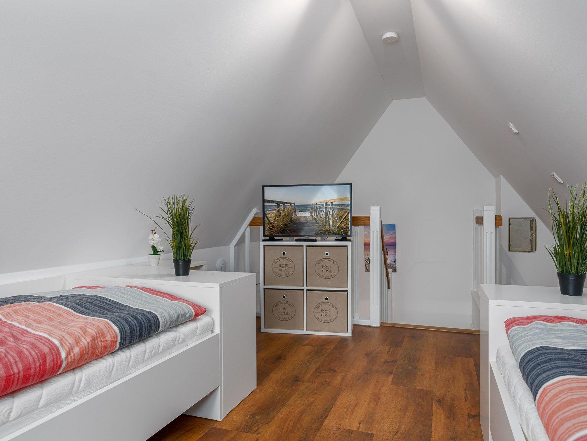 2 Schlafzimmer mit Einbauschränken und Doppelbetten (je 180x200) und 1 Studio im offenen Spitzboden mit 2 Einzelbetten (90x200).Alle ausgestattet mit Flachbildschirmen und Sat/TV