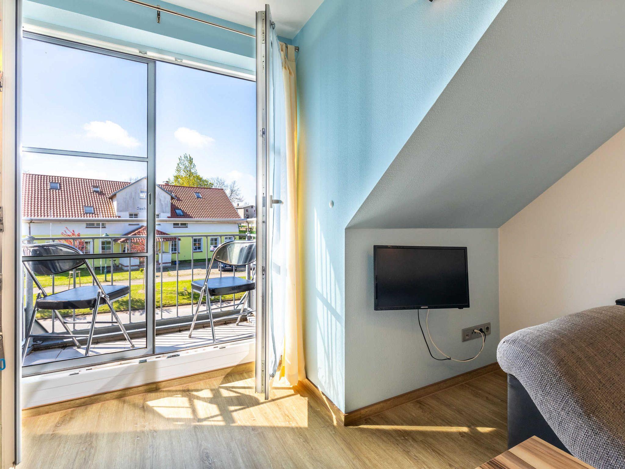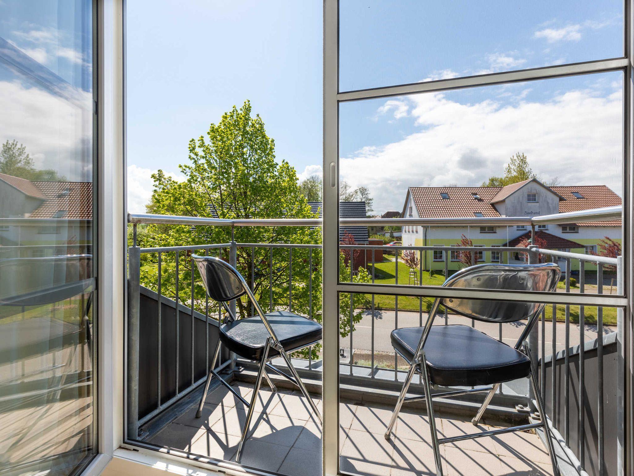 Ferienwohnung Kerstin: Die Ferienwohnung verfügt über zwei separte Schlafzimmer mit Doppelbett und Kleiderschrank, ein Schlafzimmer mit zusätzlichem Einzelbett. Wohn- Essbereich mit umfangreich ausgestatteter Küchenzeile (Kühlschrank mit Gefrierfach, 4- Platten- Herd, Backofen, Kaffeemaschine, Wasserkocher, Toaster) sowie Essbereich und Sitzecke mit ausziehbarer bequemer Schlafcouch.Vom Wohnbereich gelangen Sie auf den großen Holzbalkon mit herrlichem Blick über die weite Ostseelandschaft.Bad mit Dusche und WC.