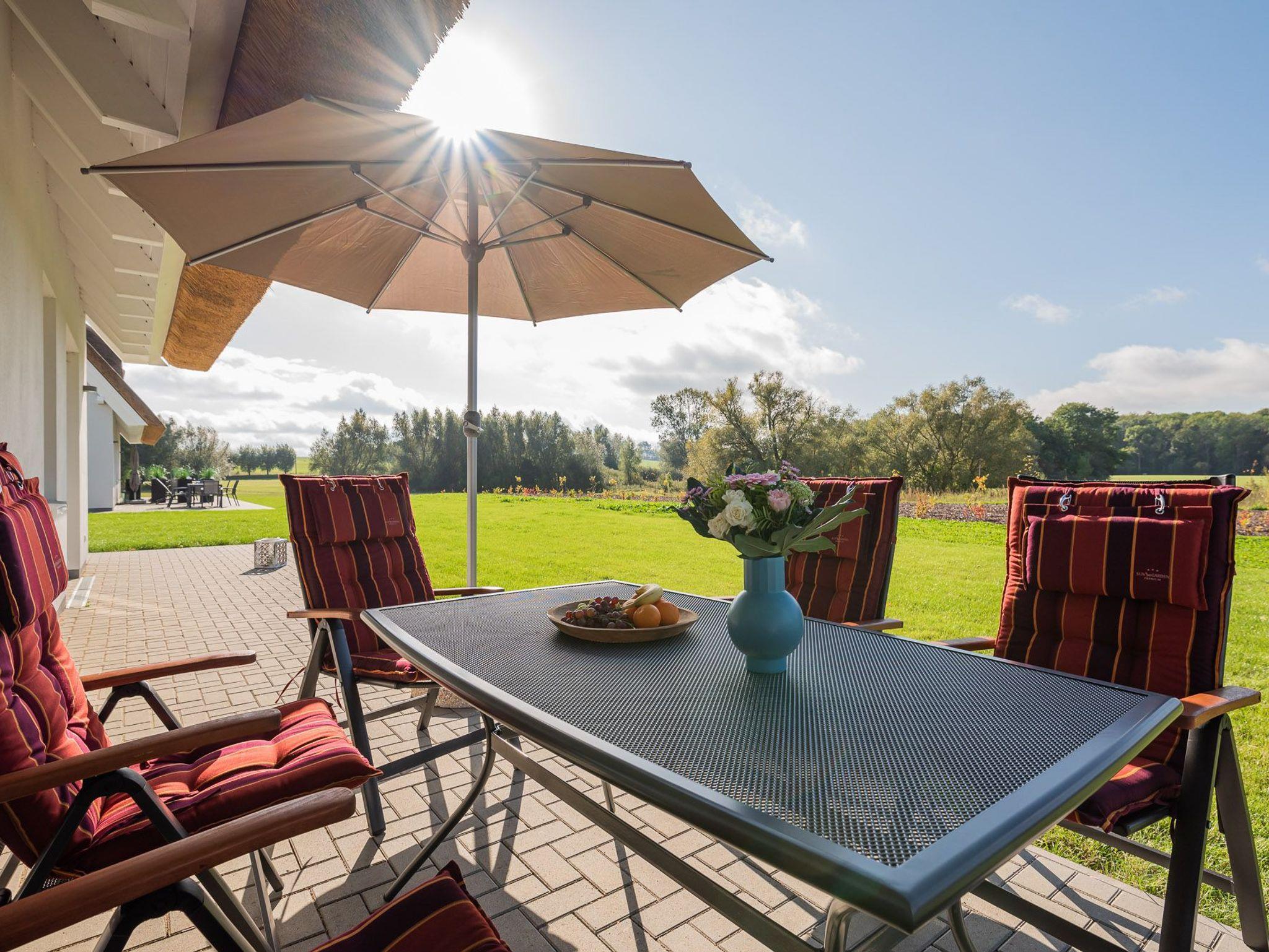 Unser mit Reet bedecktes Doppelhaus liegt ruhig gelegen am Ende einer Sackgasse und lädt auf der großzügigen Terrasse, mit einem einmaligen Blick über ein Naturschutzgebiet, zum Verweilen und Träumen ein.