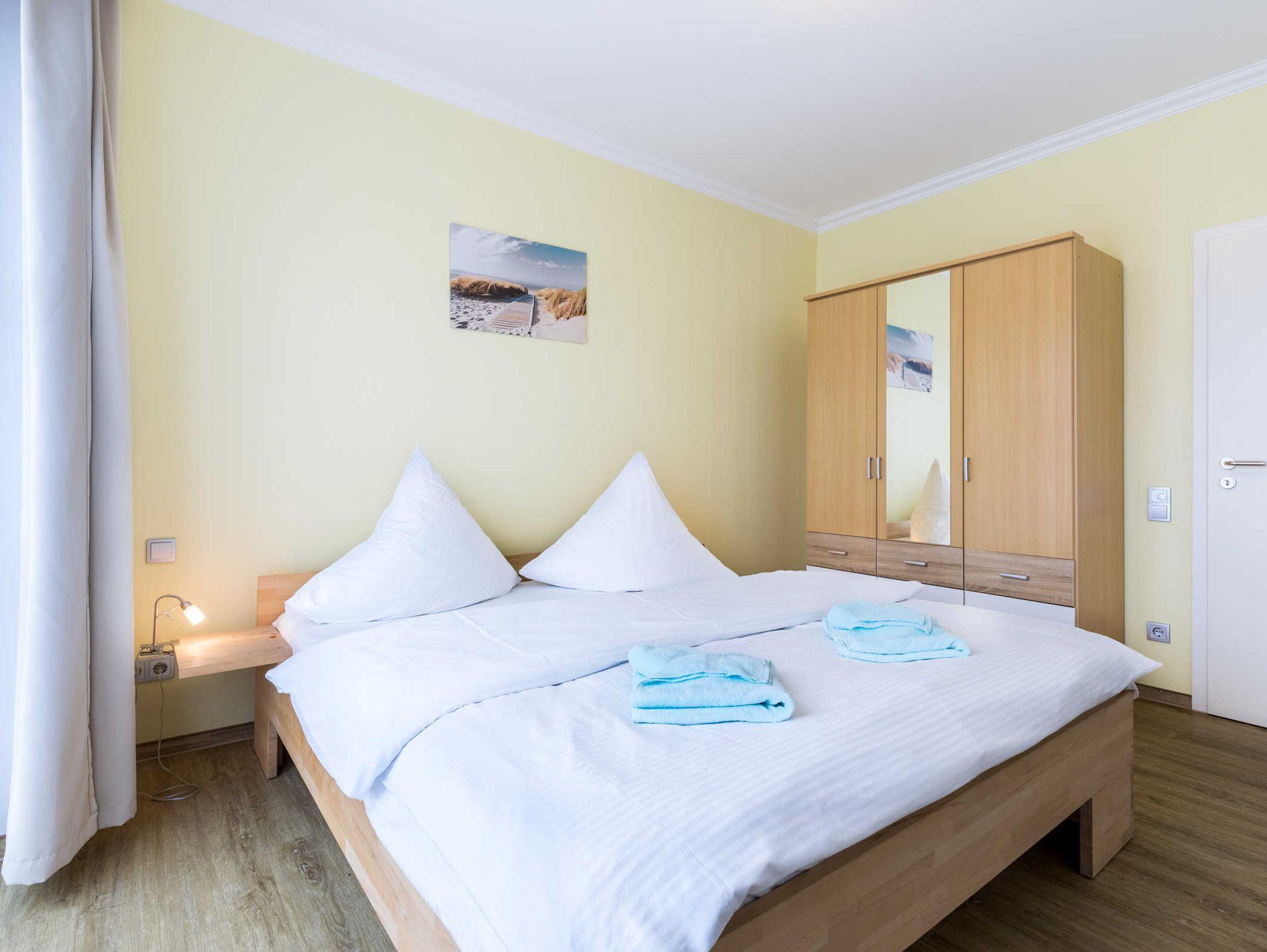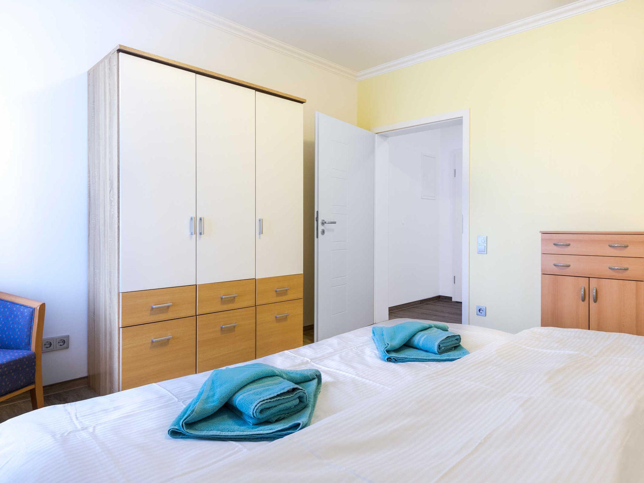 Die Ferienwohnungen Barbara und Günter können kombiniert für 10 Erwachsene und 2 Kleinkinder gebucht werden. Im Haus Drachenflieger haben diese beiden Wohneinheiten einen separaten Eingang und bieten somit einen eigenen privaten Urlaubsbereich für die Gäste. Die Ferienwohnung Barbara ist ganz und gar rollstuhlgrecht eingerichtet und bietet somit auch ein perfektes Feriendomizil für Rollifahrer. Diese Ferienwohnung verfügt über zwei separate Schlafzimmer je mit Doppelbett und Kleiderschrank sowie einen komfortablen Wohn- und Essbereich mit unterfahrbarer Küchenzeile (Kühlschrank, Gefrierfach, Kaffeemaschine, Toaster, Wasserkocher). Der Esstisch sowie die Sitzecke mit bequemer Schlafcouch bieten ausreichend Platz zum Wohlfühlen. Aus dem Wohnzimmer gelangen Sie direkt auf die Holzterrasse mit dem Blick auf die Ferienanlage und in die grüne Salzhafflandschaft. Das Bad mit Dusche und WC ist barriefrei gestaltet.