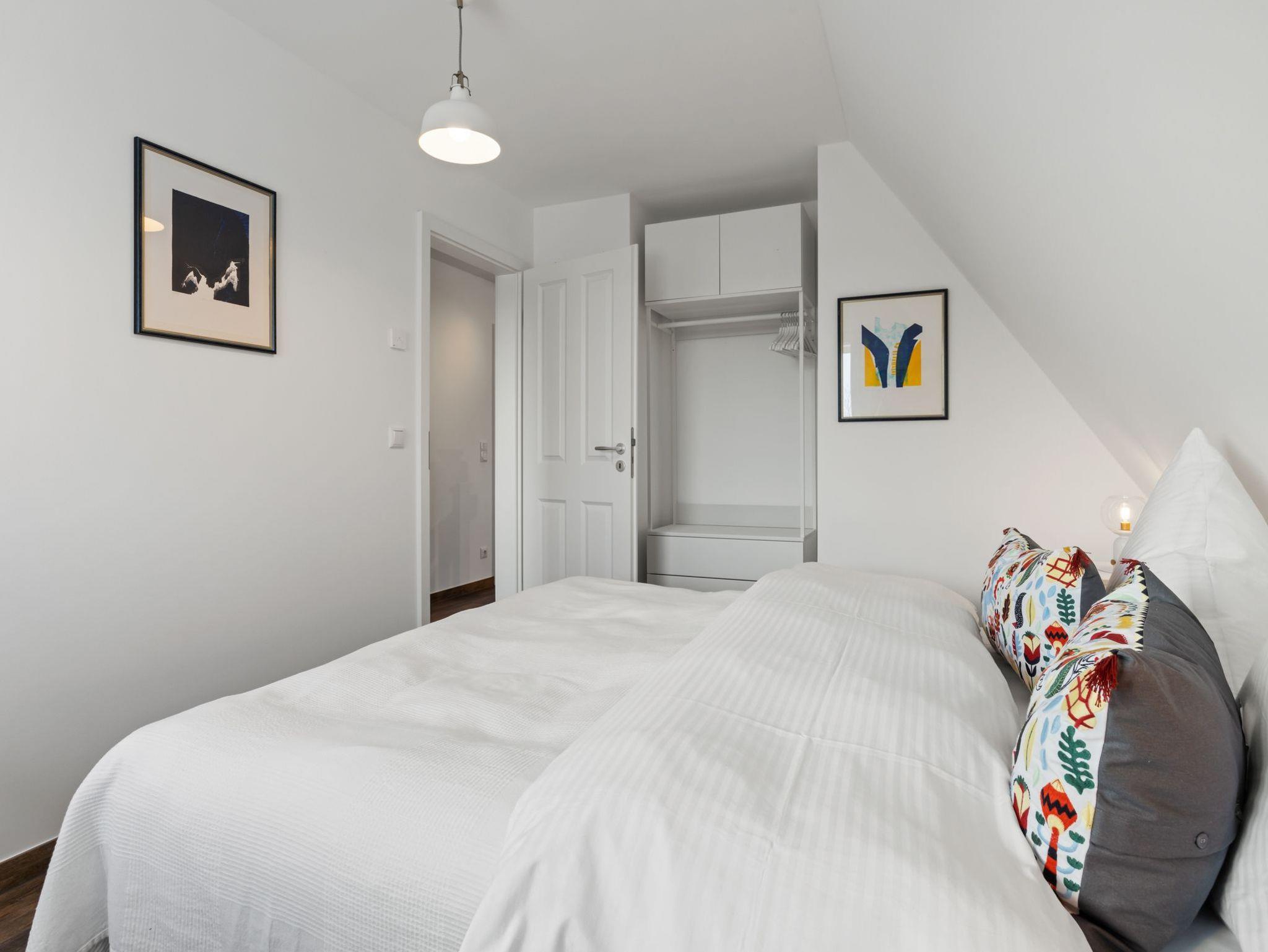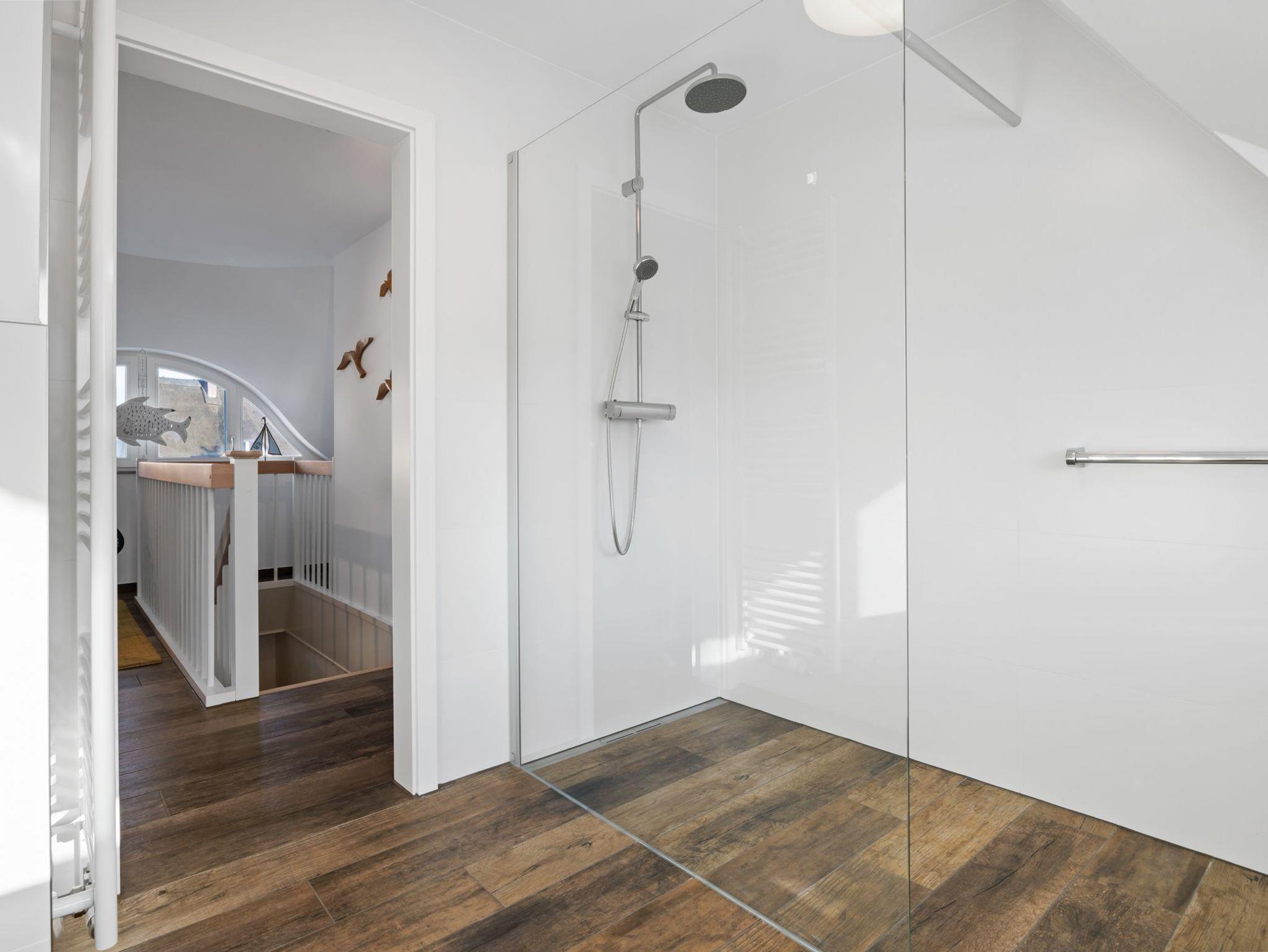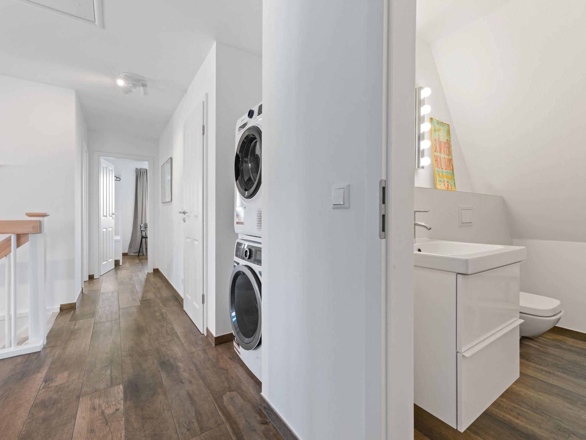 Im Obergeschoss befinden sich drei weitere Schlafzimmer sowie ein Arbeitszimmer als Rückszugort. Schlafzimmer 2 mit Doppelbett (1,80 x 2,00m), offenem Kleiderschrank. Schlafzimmer 3 mit Doppelbett (1,60 x 2,00m), und offenem Kleiderschrank, Schlafzimmer 4 mit Doppelbett (1,40 x 2,00m) und Kleiderkommode. Zimmer 5 mit Arbeitsbereich und herrlichem Ausblick vom Schreibtisch. In der Galerie des OG ist ein chilliger Bereich für die Gäste des Hauses enstanden, somit gibt es viele individuelle Rückzugsorte im haffhouse. Unter der Reetgaube lädt das Wohlfühlbad mit Rainshower- Dusche zu kleinen Wellnesseinheiten ein. Ein weiteres Gäste WC ist ebenso im OG vorhanden sowie Waschmaschine und Trockner im Flurbereich.