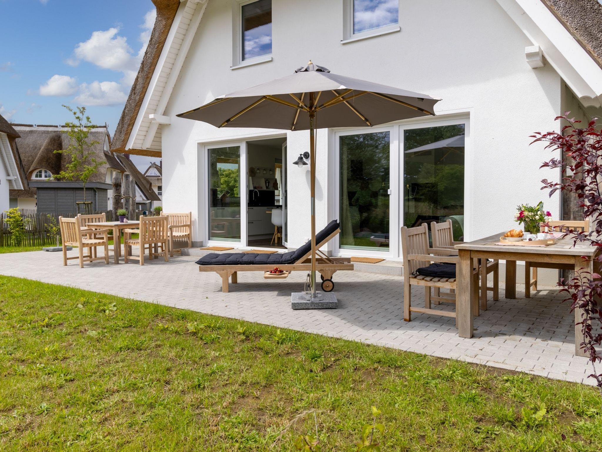 haffhouse - Dein Haus unter Reet bietet als 6- Zimmer Ferienhaus auf 130 Quadratmetern eine komfortable und farbenfrohe Einrichtung und Ausstattung. Schon das Ankommen im Haff House sorgt für Lust auf Urlaub und Meer.