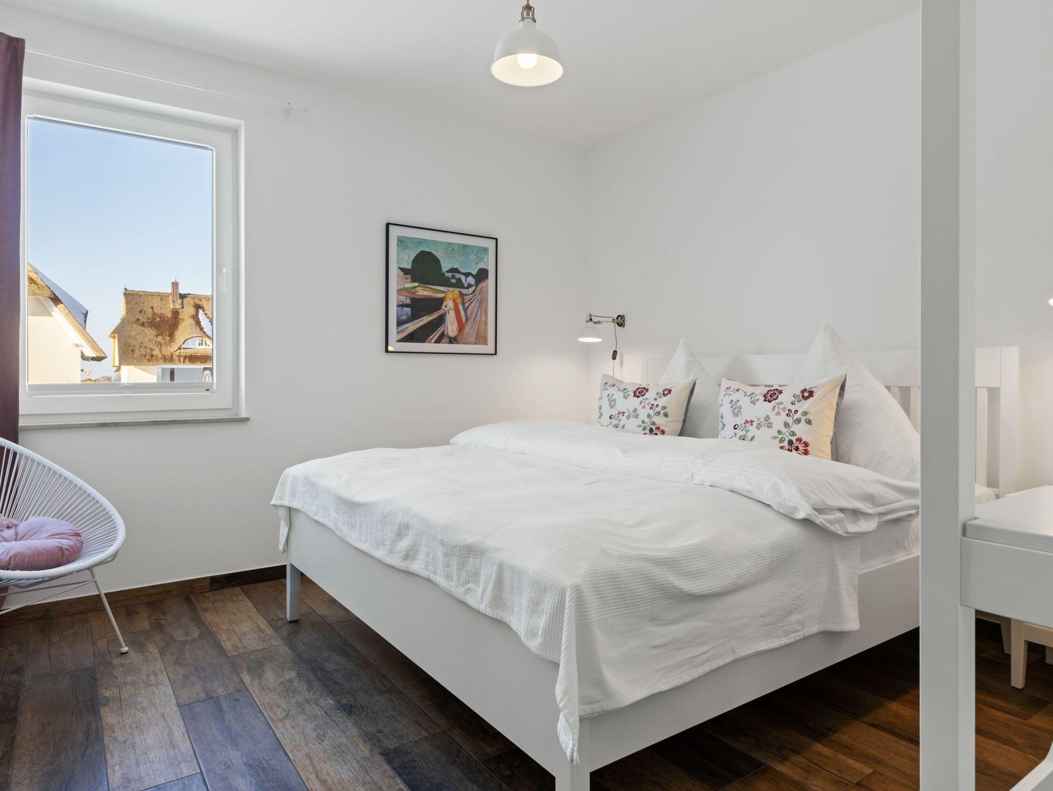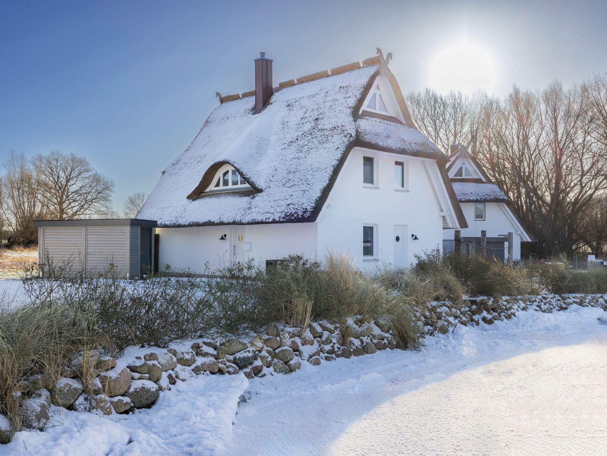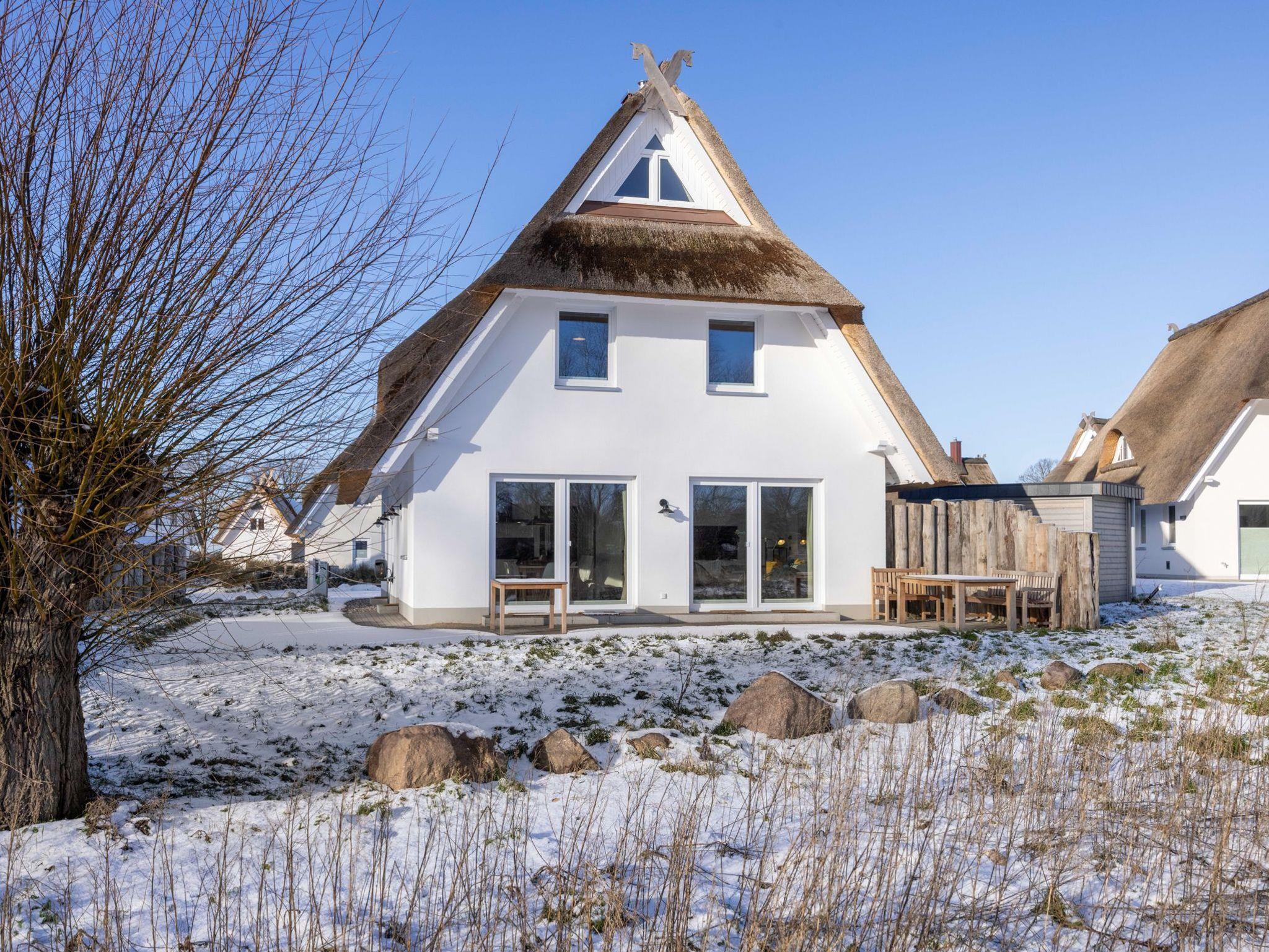 Auf 130 qm verteilt, gibt es ausreichend Platz für bis zu 8 erwachsene Gäste und ein Kleinkinde bis 2 Jahre. In 4 großzügigen Schlafzimmern, 2 Bädern, einem Gäste WC und einem urgemütlichen Wohn- Essbereich mit freier Aussicht in die Landschaft der Salzhaffregion. Das EG des Ferienhauses ist barrierefrei und rollstuhlfreundlich gestaltet.