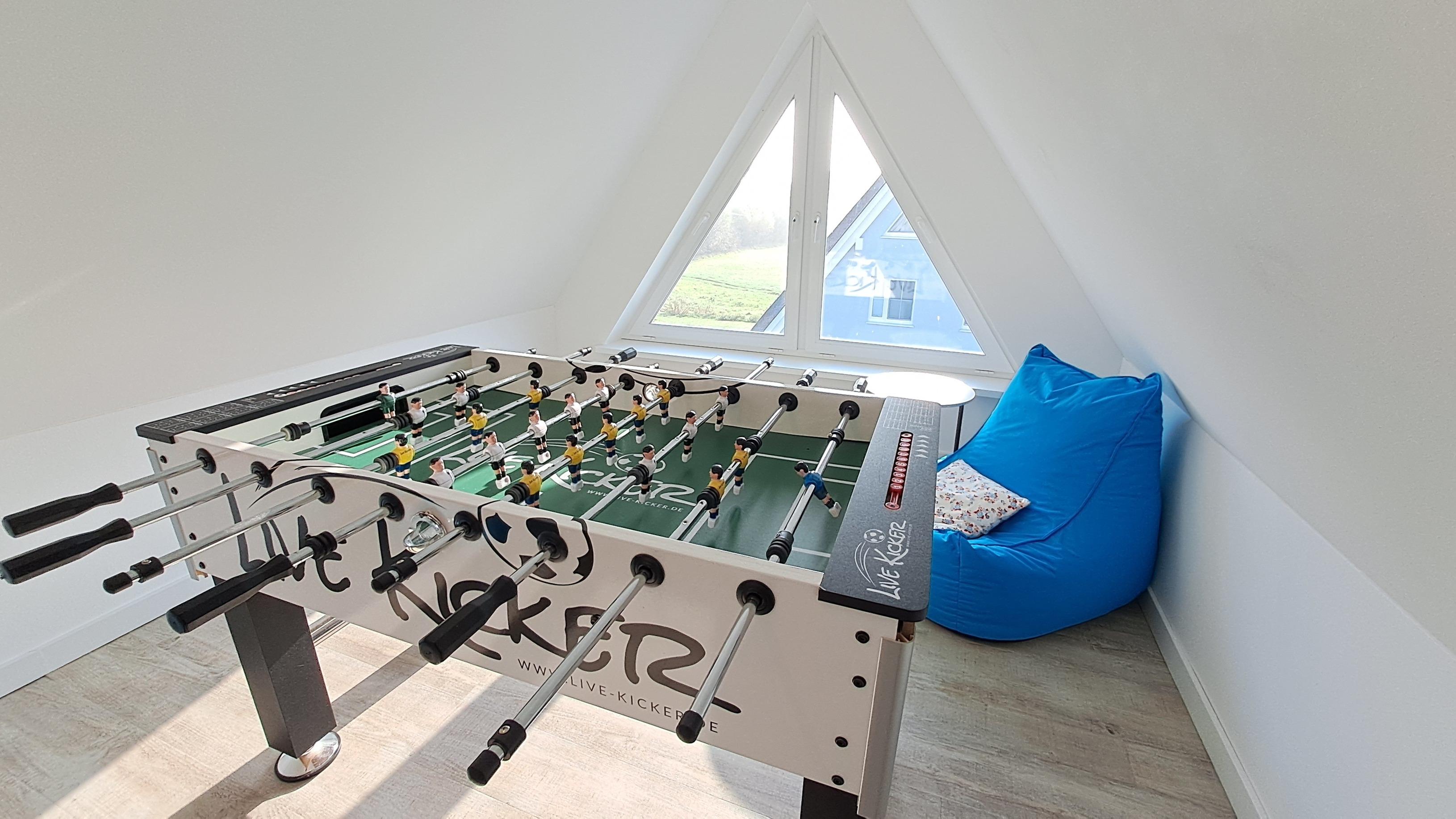 Ideal für die Nebensaison: Der Kicker im Spitzboden lässt keine Langeweile aufkommen.