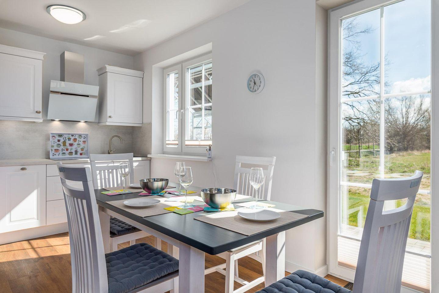 Das Reetdachhaus „Am Salzhaff“ in Pepelow bietet auf ca. 83 m² Platz für bis zu sechs Personen in drei Schlafzimmern. Zur komfortablen Ausstattung zählen eine offene Küche, WLAN, TV, Terrasse mit Gartenblick, kostenloser Privatparkplatz, ein Kinderhochstuhl sowie gemeinschaftliche Waschmaschinennutzung. Kinder sind herzlich willkommen.