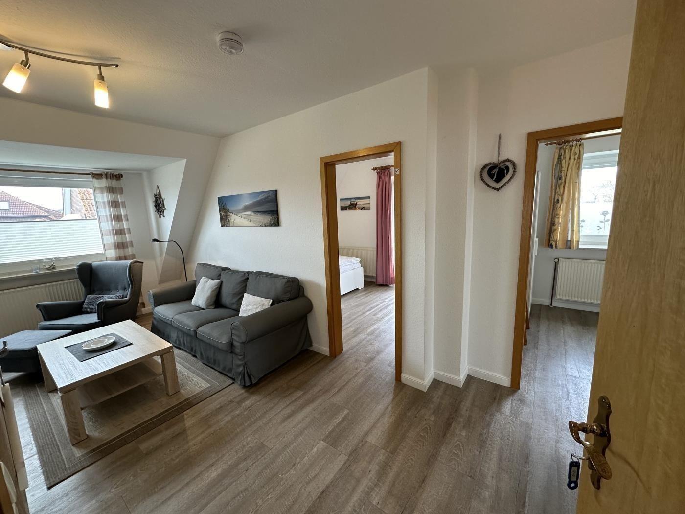 Die Ferienwohnung im 1. OG mit Südbalkon eignet sich für 4 Personen plus Kleinkind.