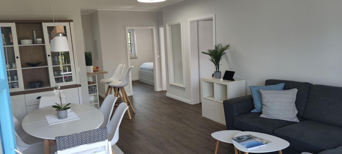 Sie finden diese gemütliche und mit viel Liebe zum Detail modern eingerichtete Ferienwohnung im Inselwesten. Diese Wohnung besticht durch Ihre Farbabstimmung und hat dadurch das gewisse Flair. Sie ist ideal für Familien mit 2 Kindern und hat zusätzlich ein Bett für Kleinkinder (bis 5 Jahre) oder für 4 Erwachsene. Im Elternschlafzimmer befindet sich ein hochwertiges Doppelbett (160x200cm) mit durchgehender Matratze und ein großer Kleiderschrank. Im Kinderzimmer steht Ihnen eine auf 160x200cm ausziehbare Schlafcouch zur Verfügung (Matratzen je 80 cm).