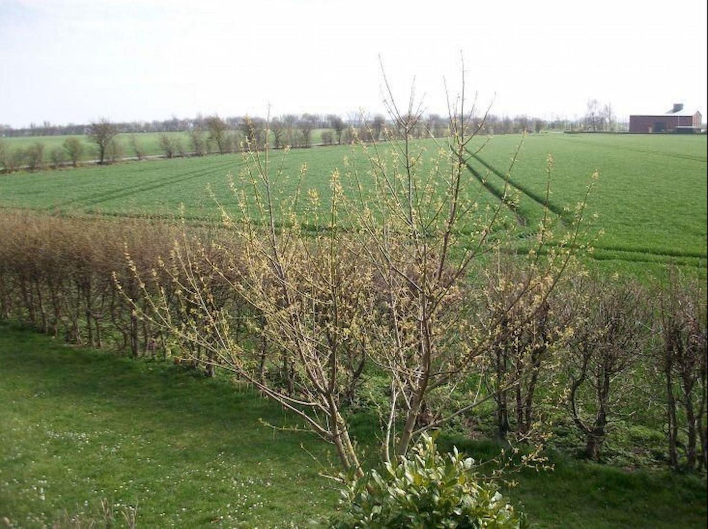 Balkon mit Gartenmöbeln und Sonnenschirm nach Südosten gelegen mit Blick über die Felder.
