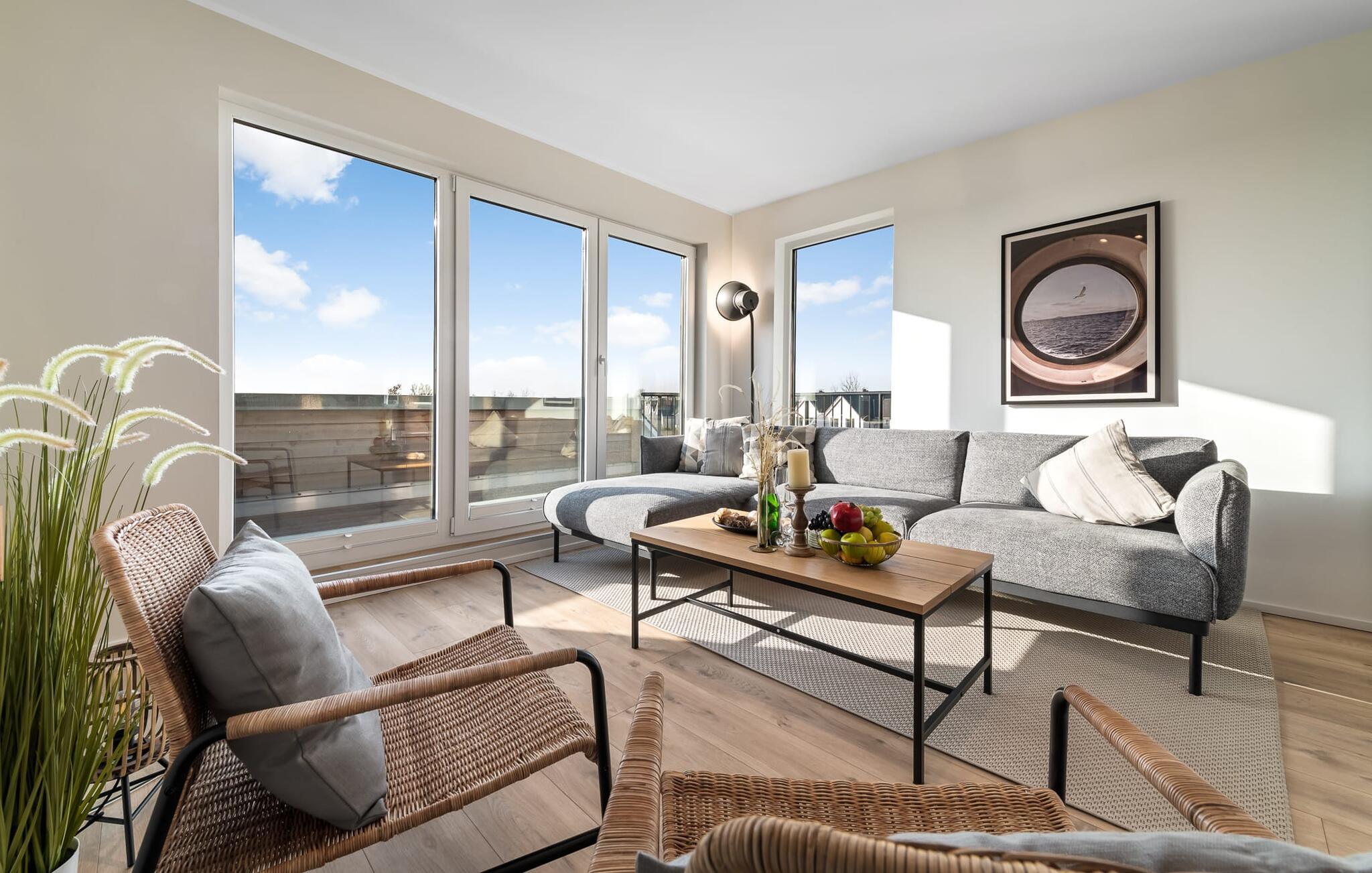 Geräumige Maisonette-Ferienwohnung PIER 18 mit Meerblick, Kamin und Sauna im OstseeResort Olpenitz.