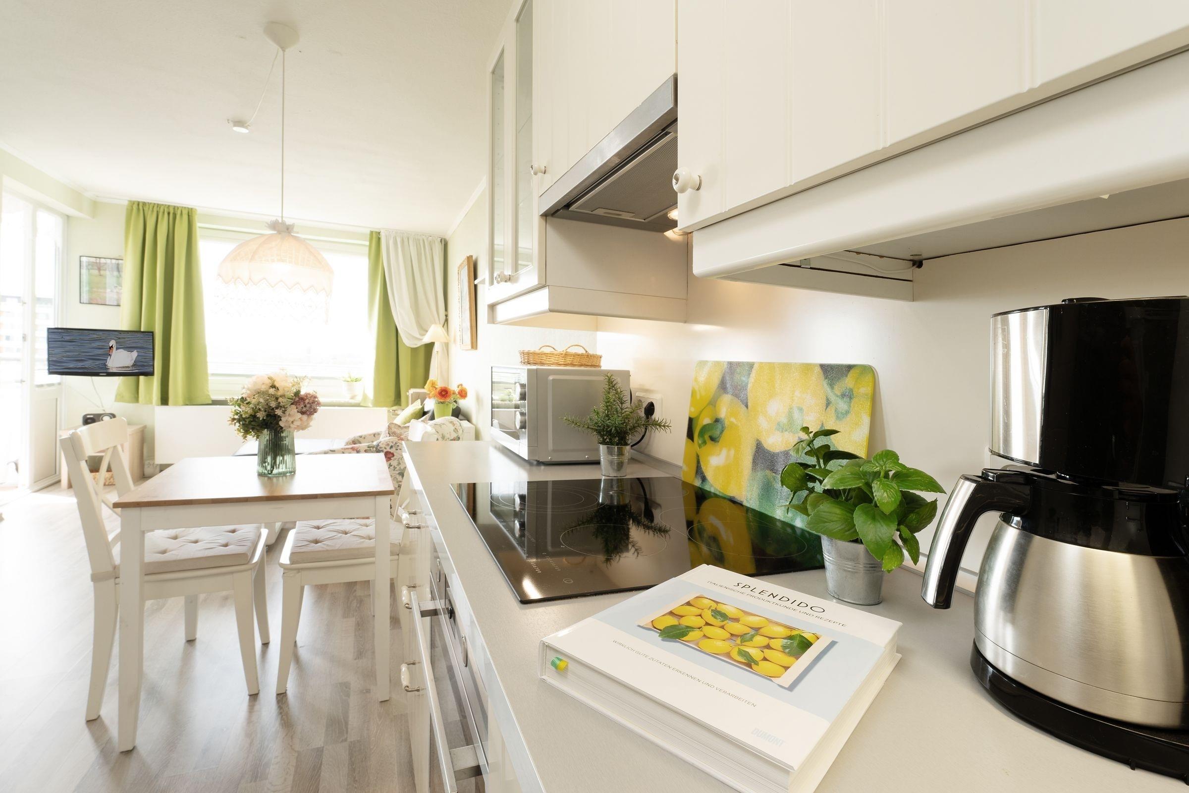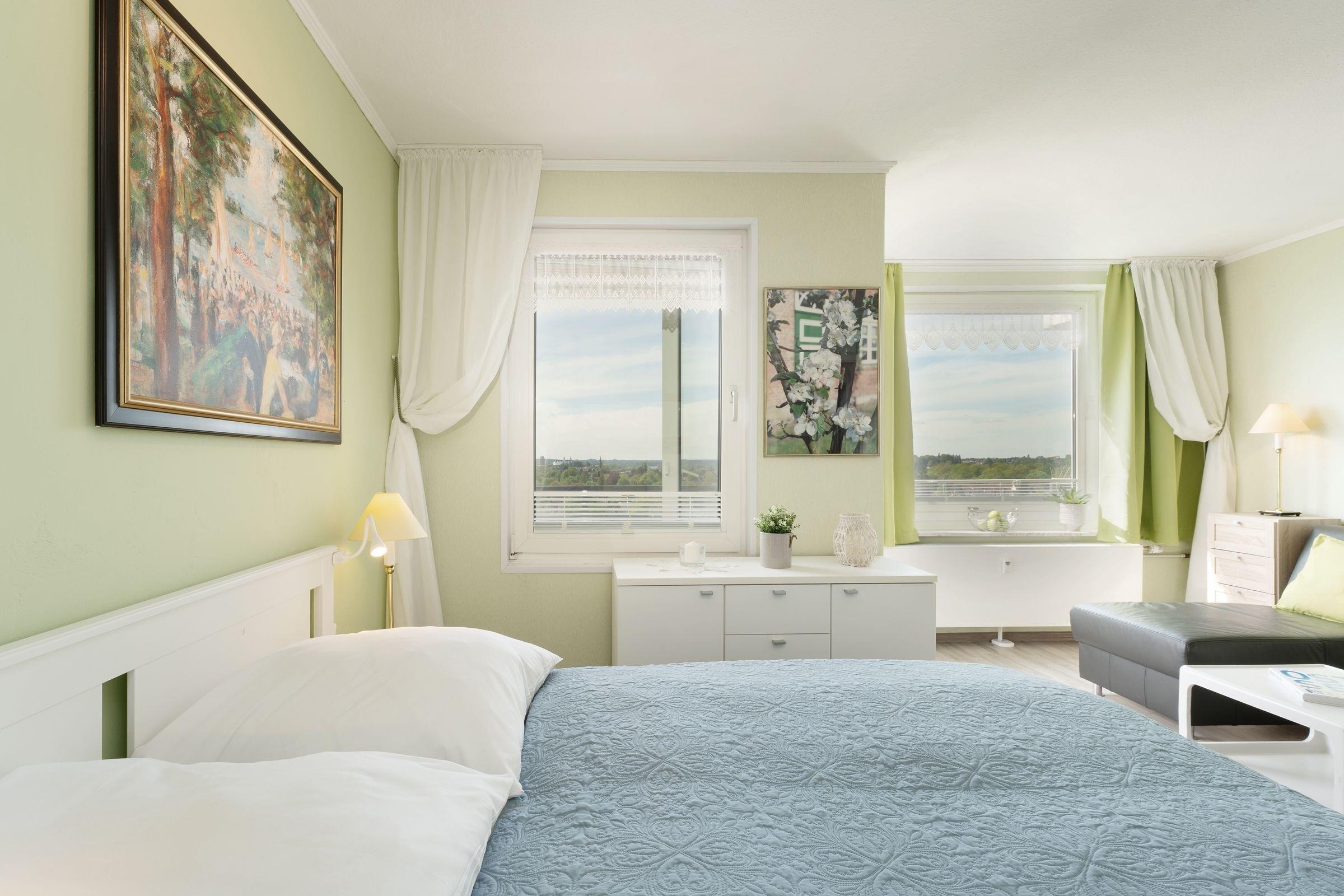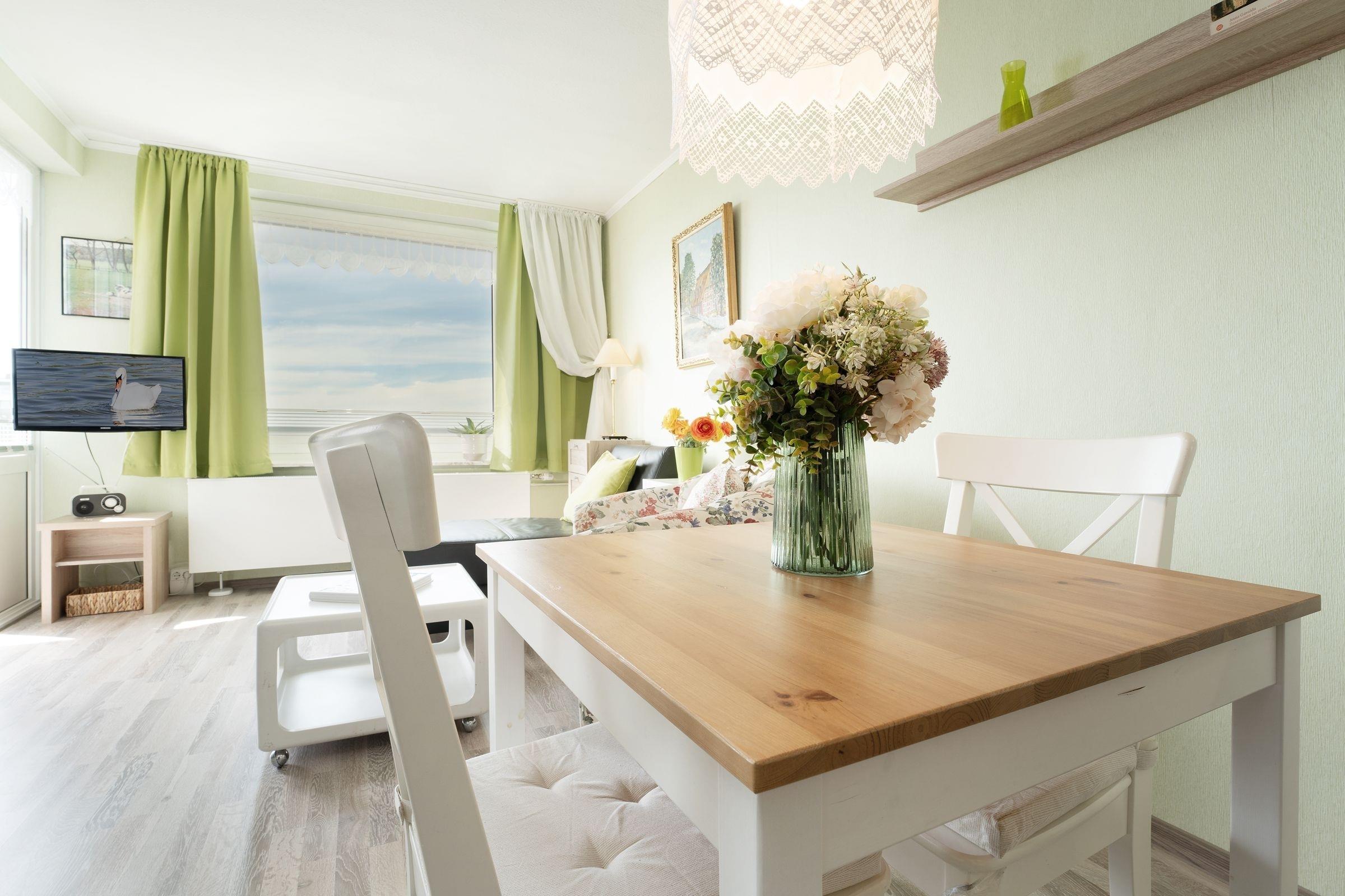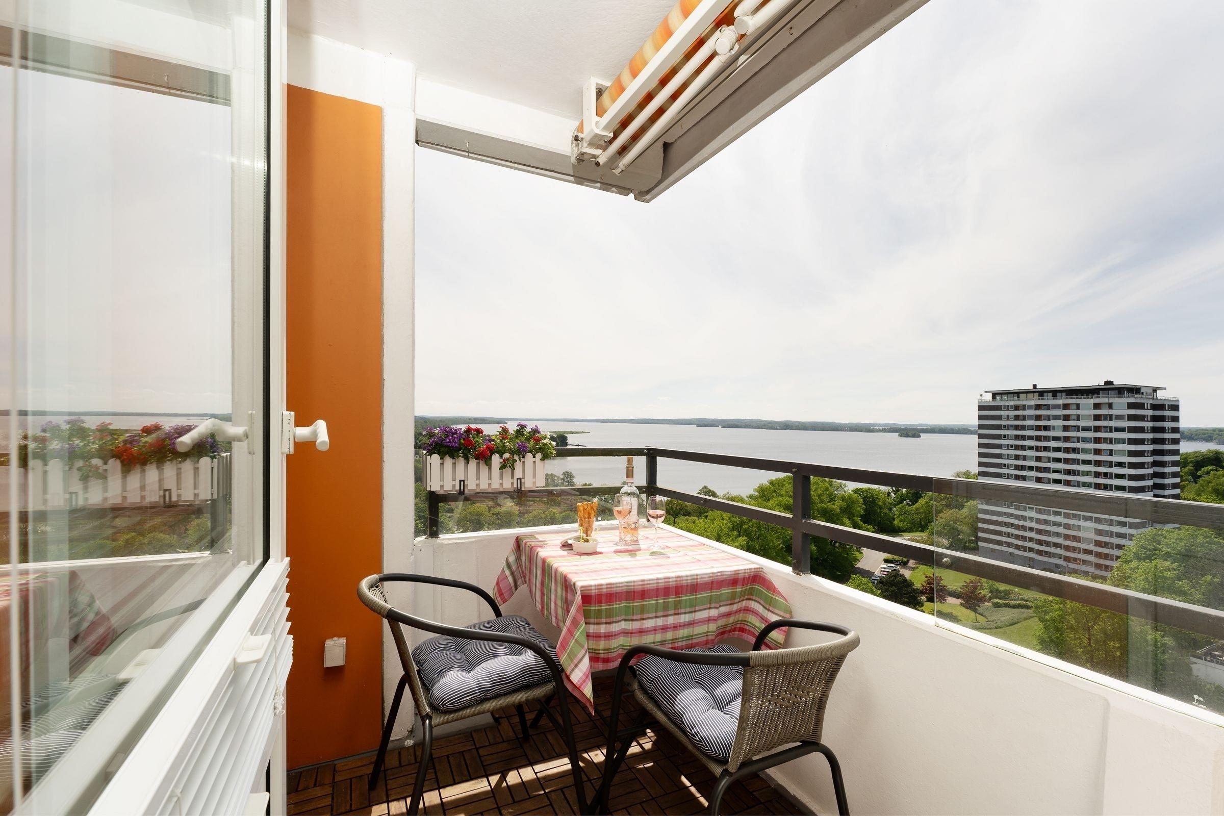 In der besten Lage von Plön: zauberhafte, ca. 34 m² große 1-Zimmer-Ferienwohnung im 13. Stock mit Balkon und Weitblick für bis zu 2 Personen.
