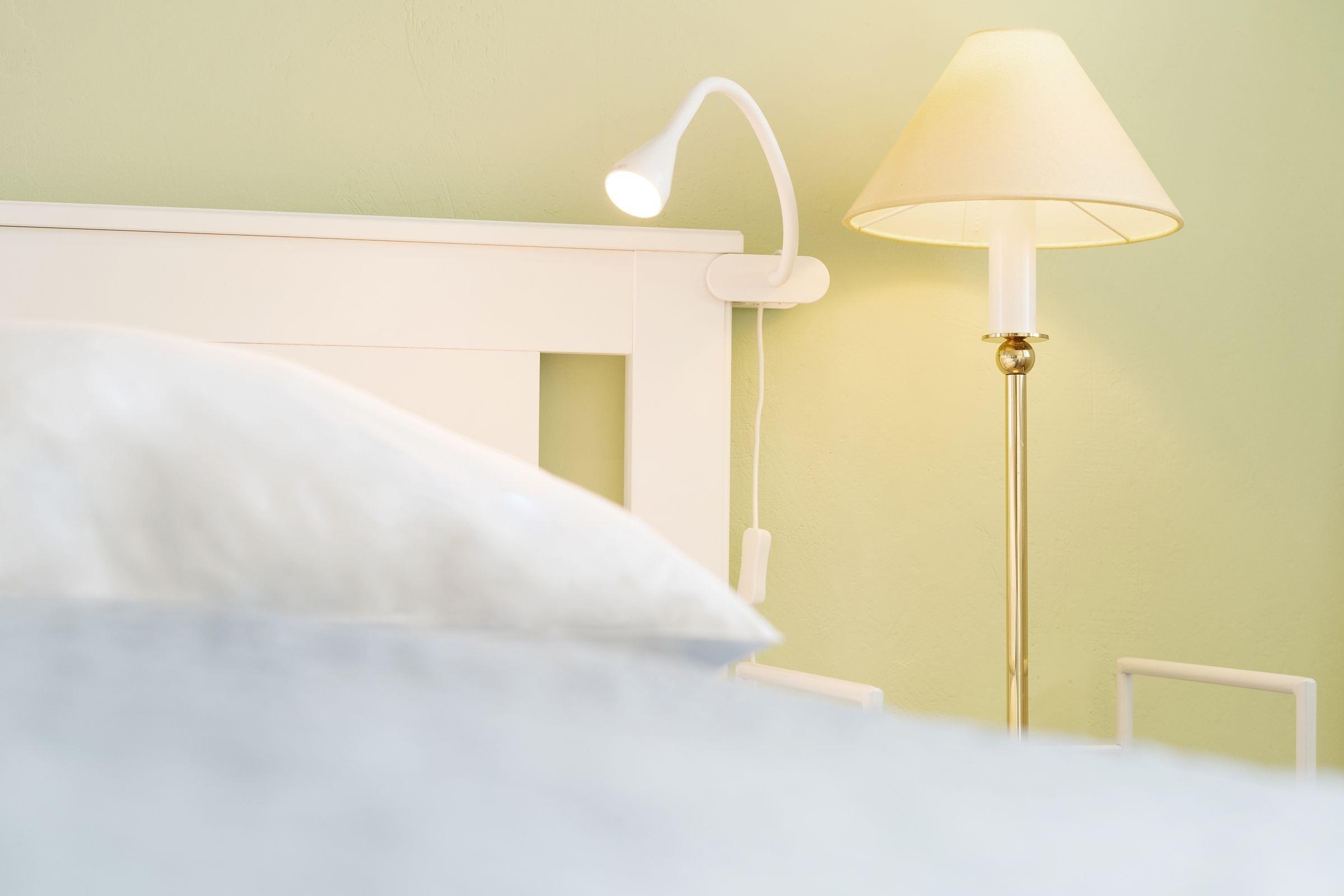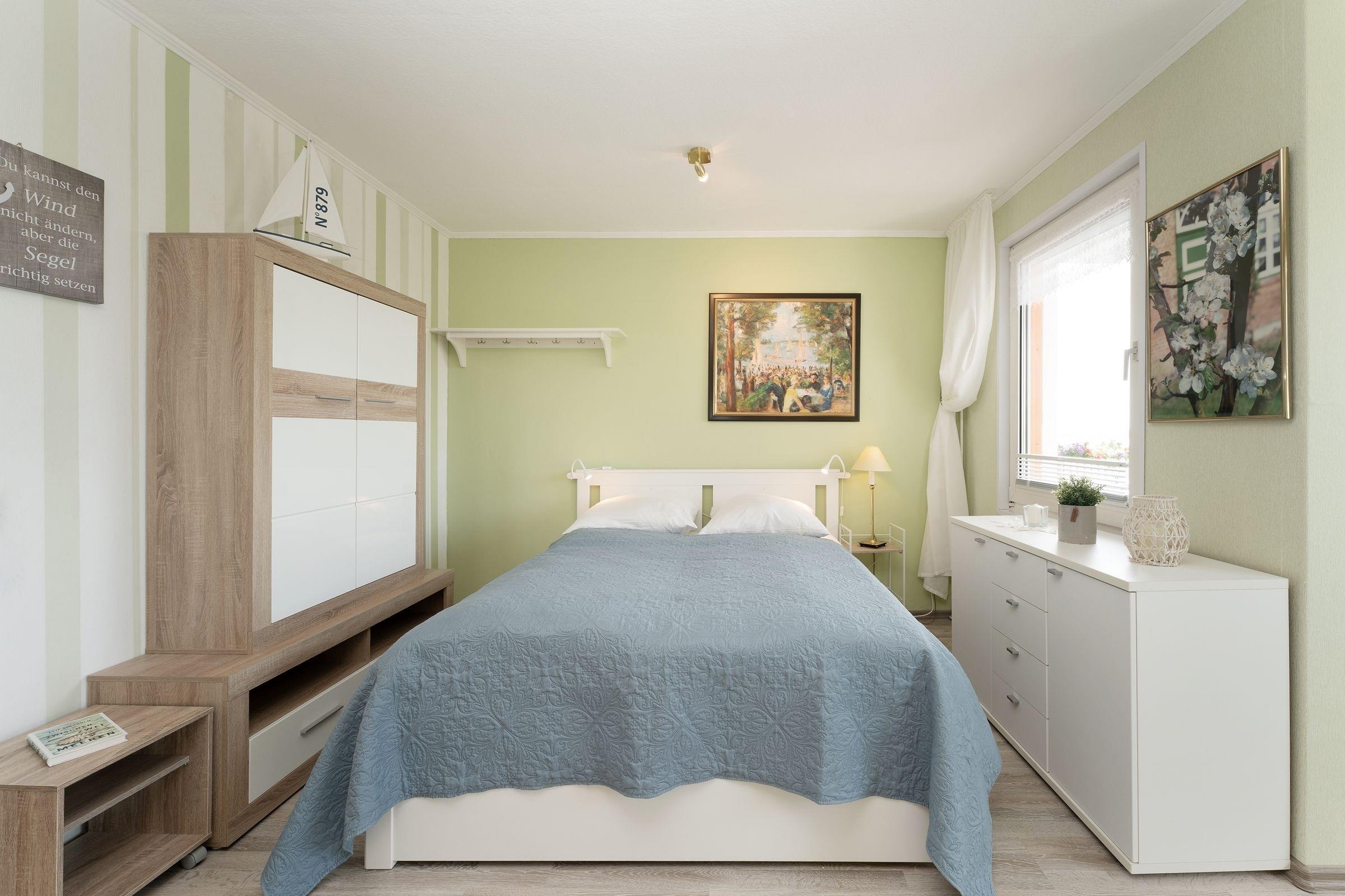 Wohnzimmer: 1 Doppelbett (2x 90x200 cm), Kleiderschrank, Verdunkelungsmöglichkeit: Plissees und Vorhang, TV, kein Platz für Babybett vorhanden
