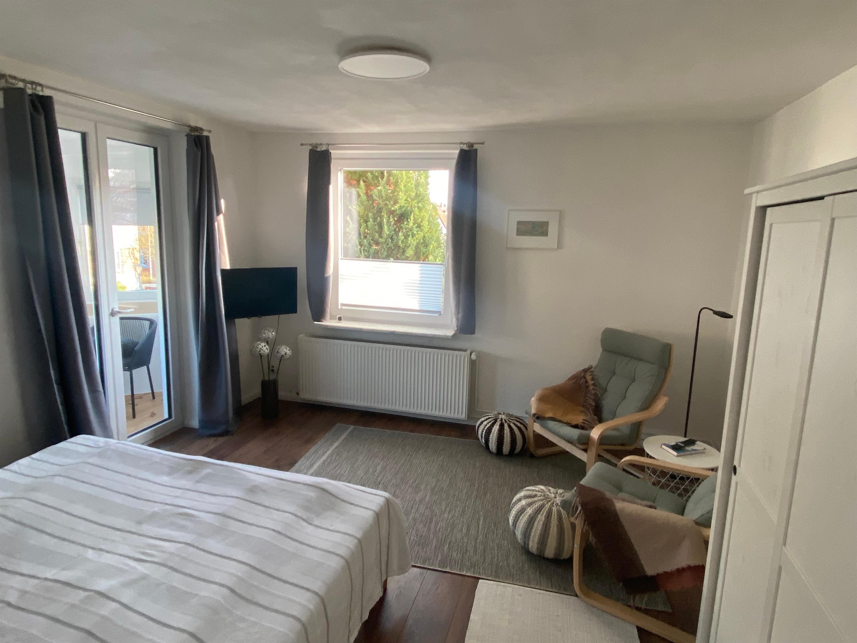 Der Schlafbereich ist mit einem bequemen Doppelbett (2 x 90 x 200 cm), zwei Sesseln und einem Flachbild-TV ausgestattet. Ein WLAN Gastzugang ist für Sie eingerichtet.
