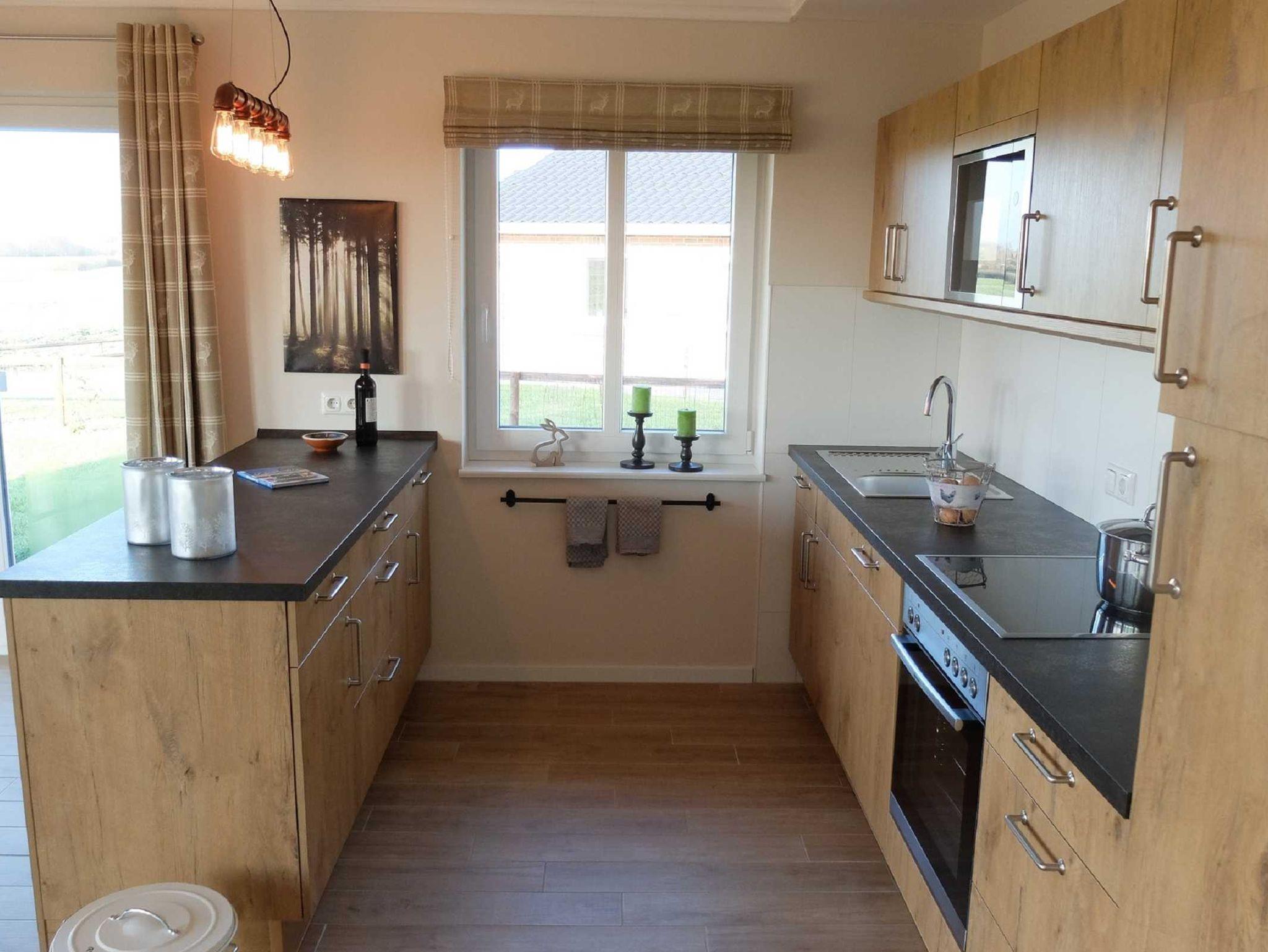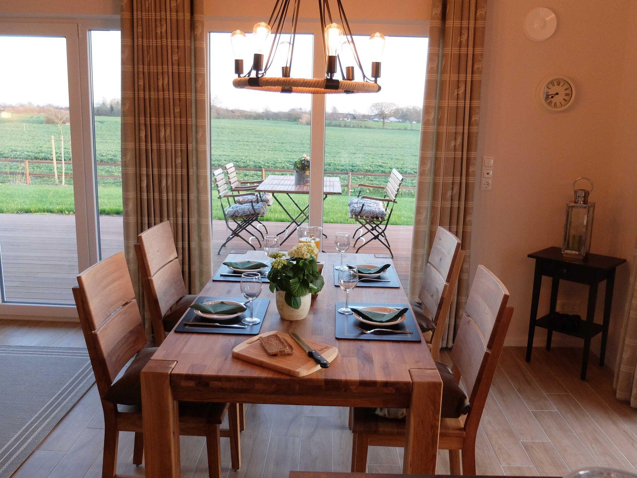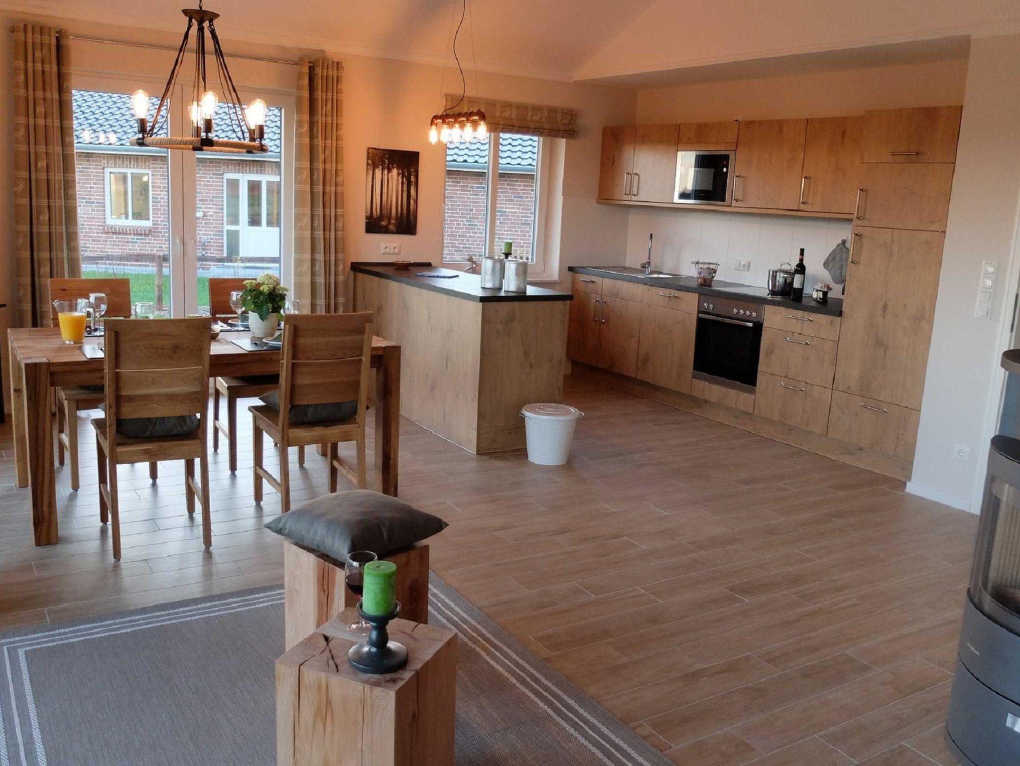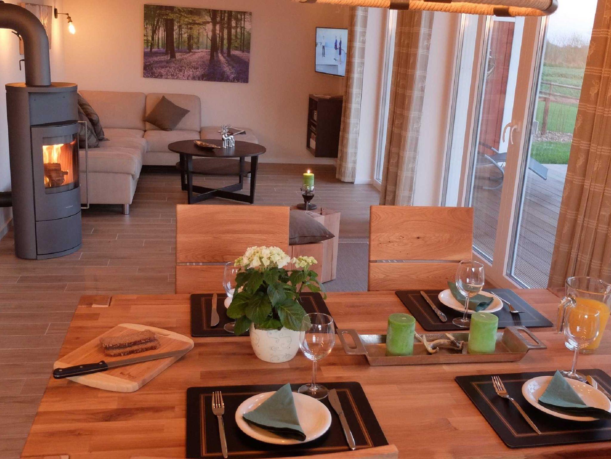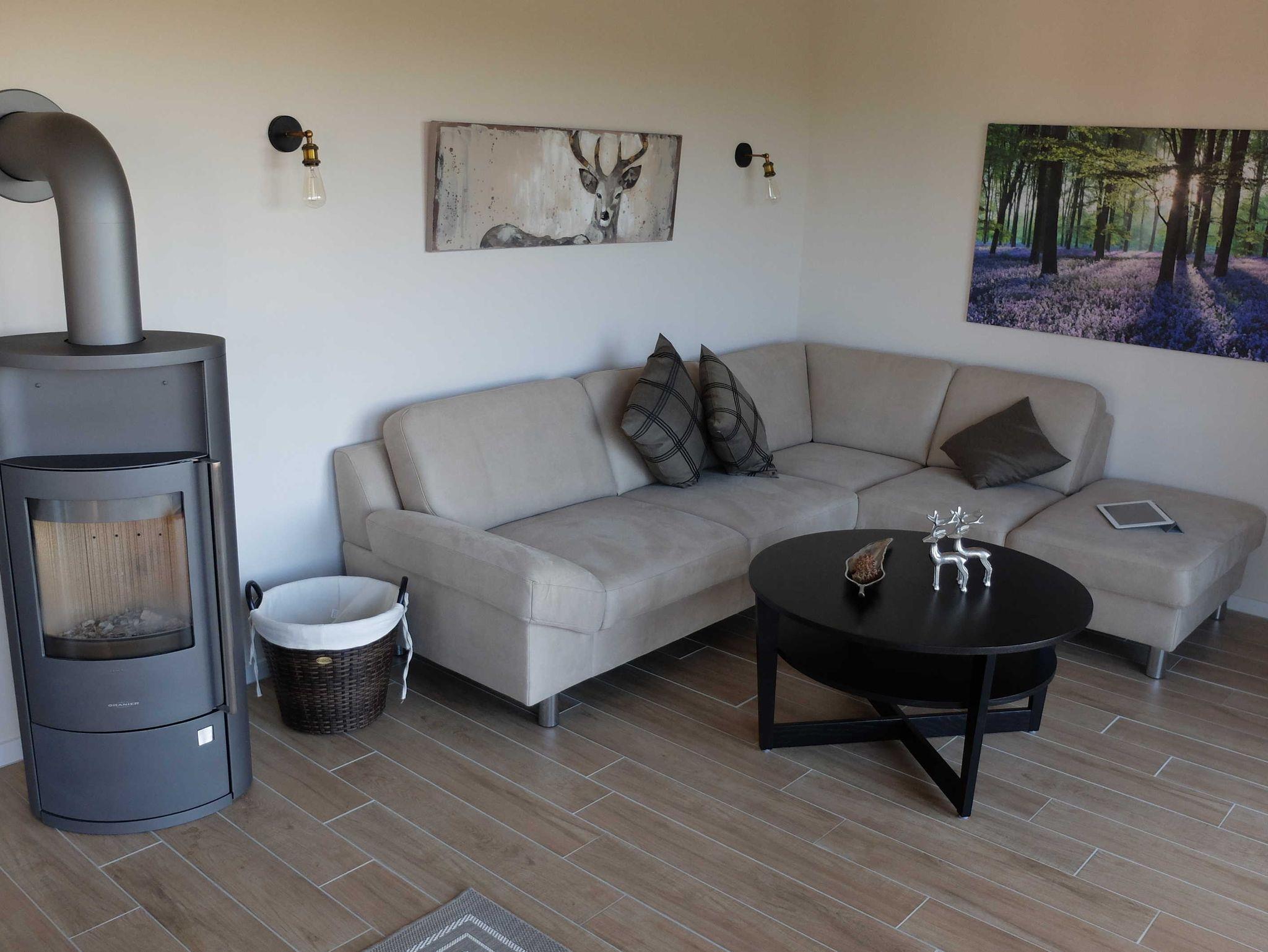 - großzügiger Wohn-/Essbereich mit Kaminofen und offener Küche; Feuerholz inklusive