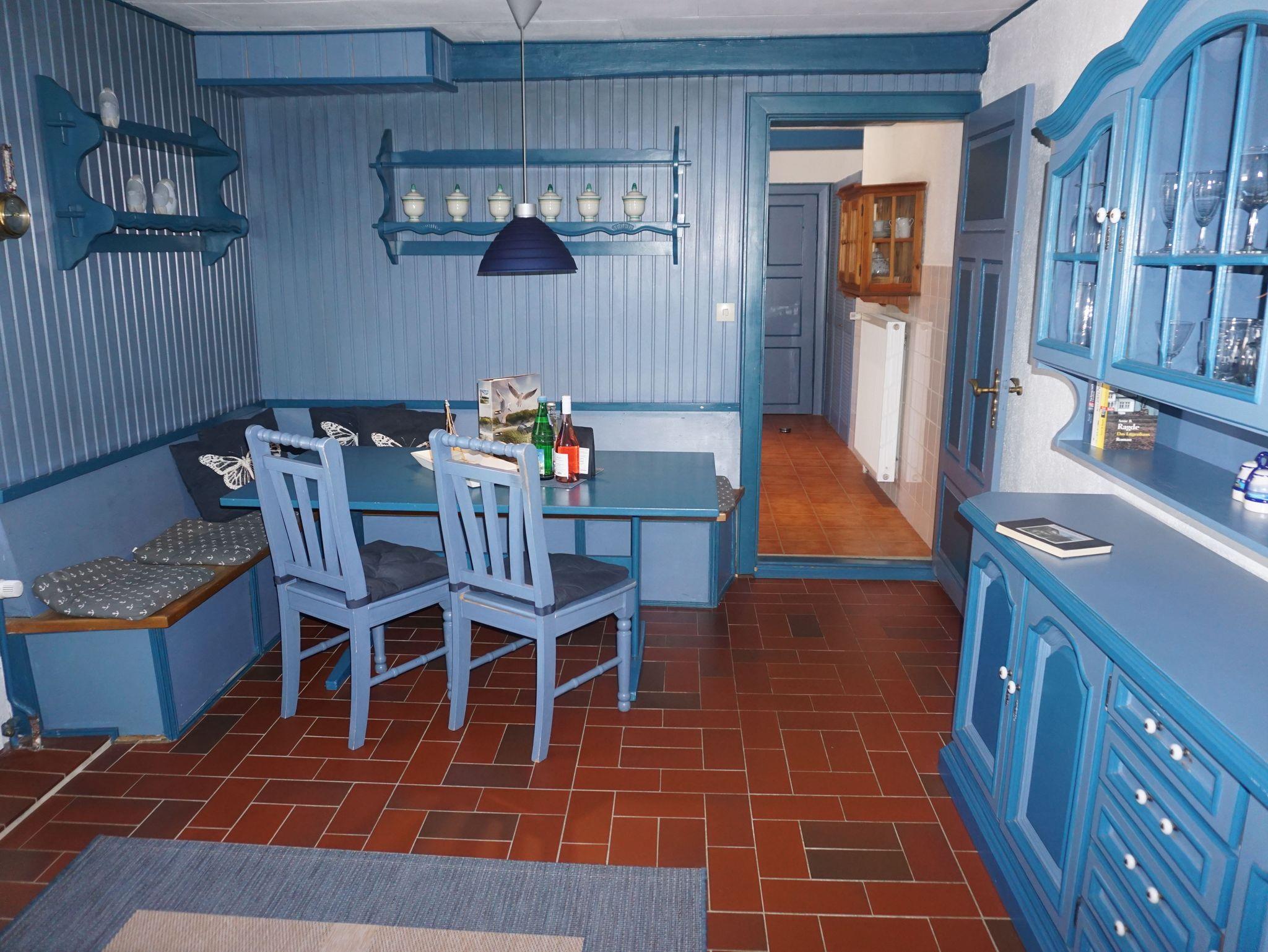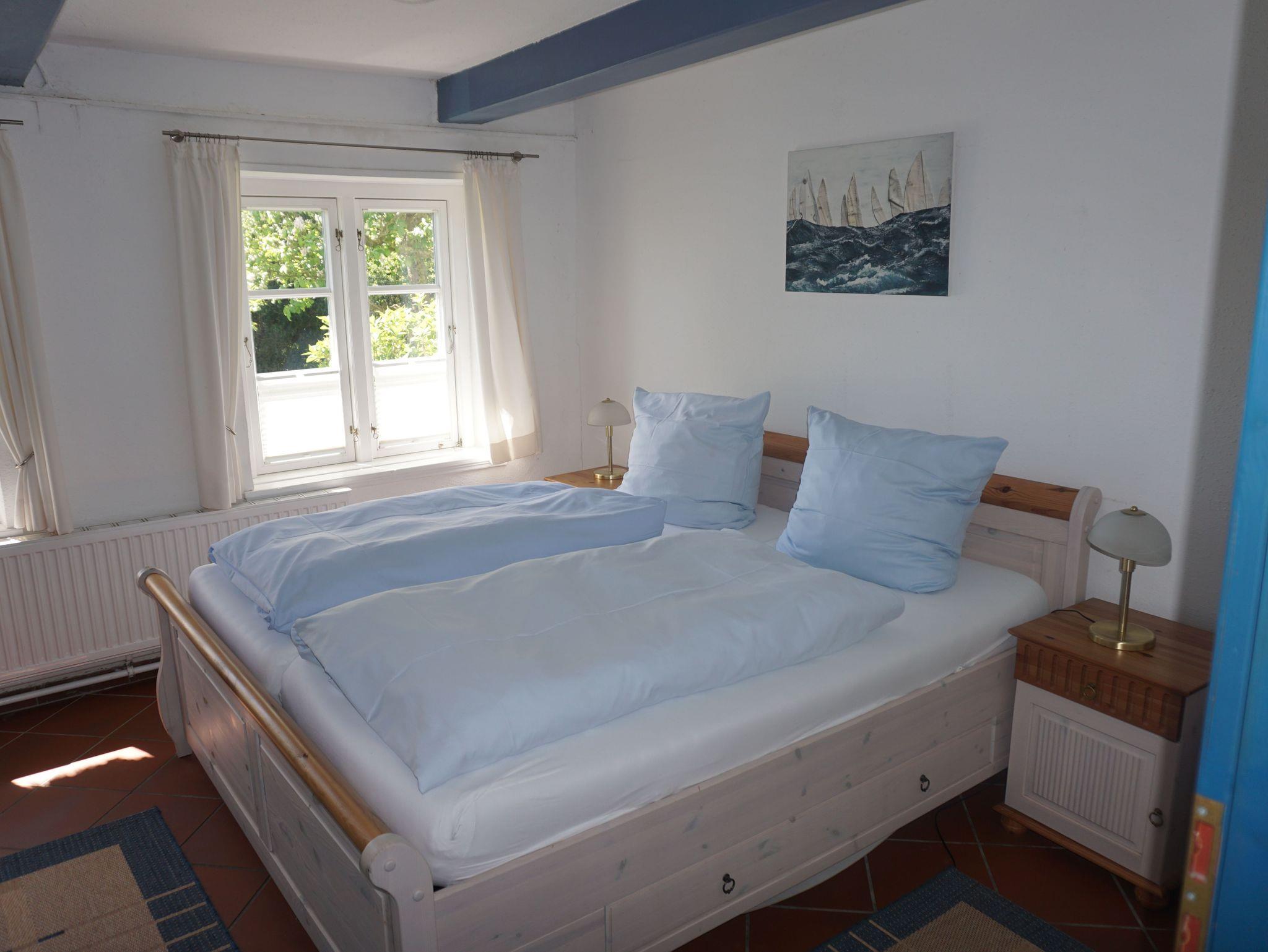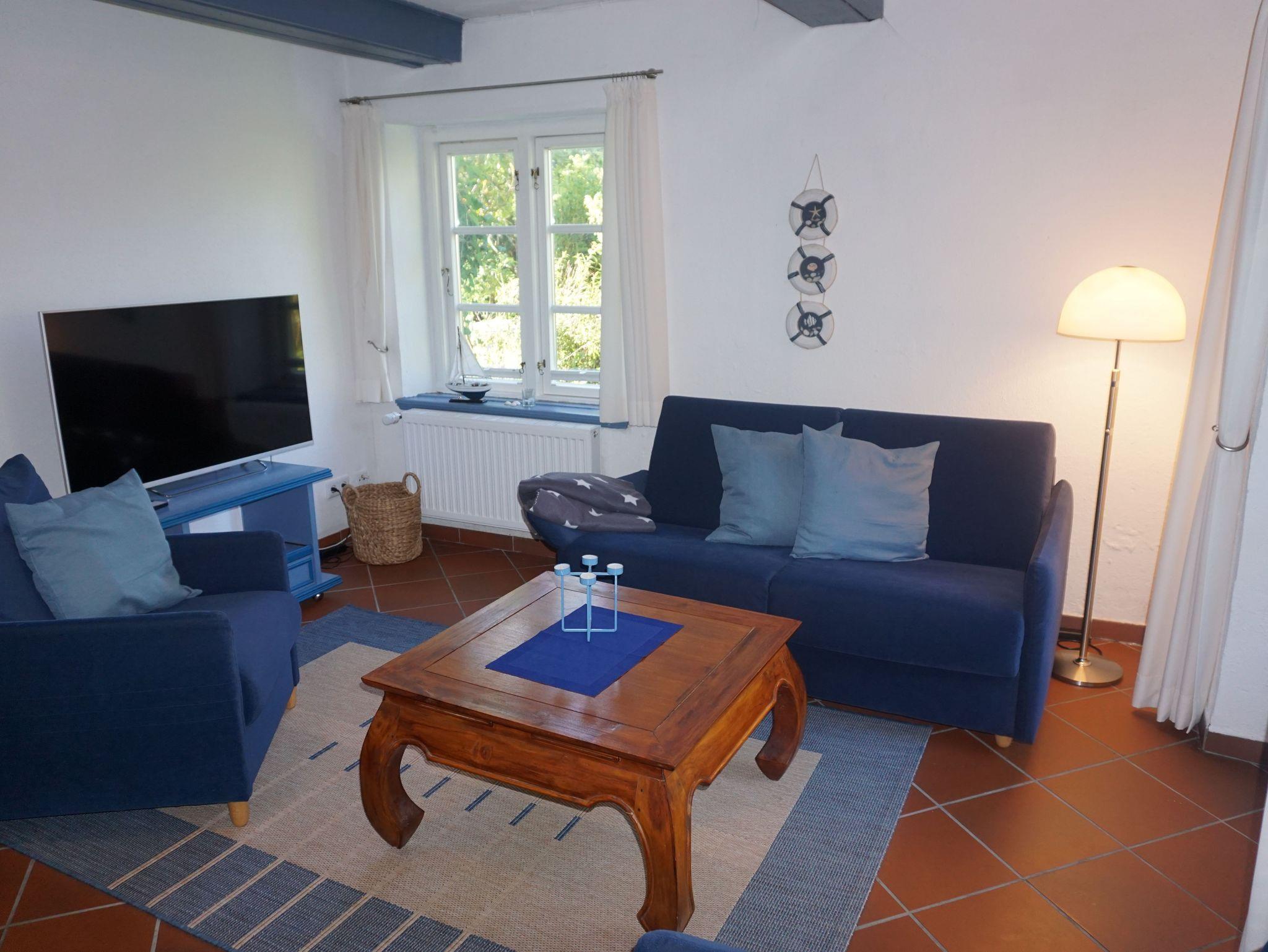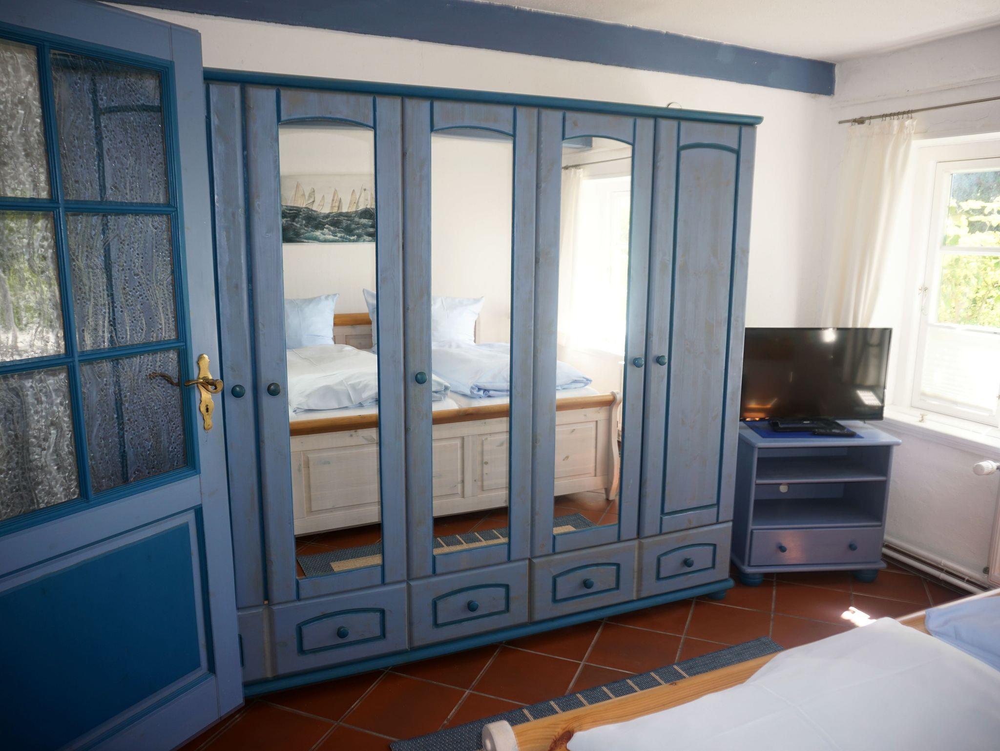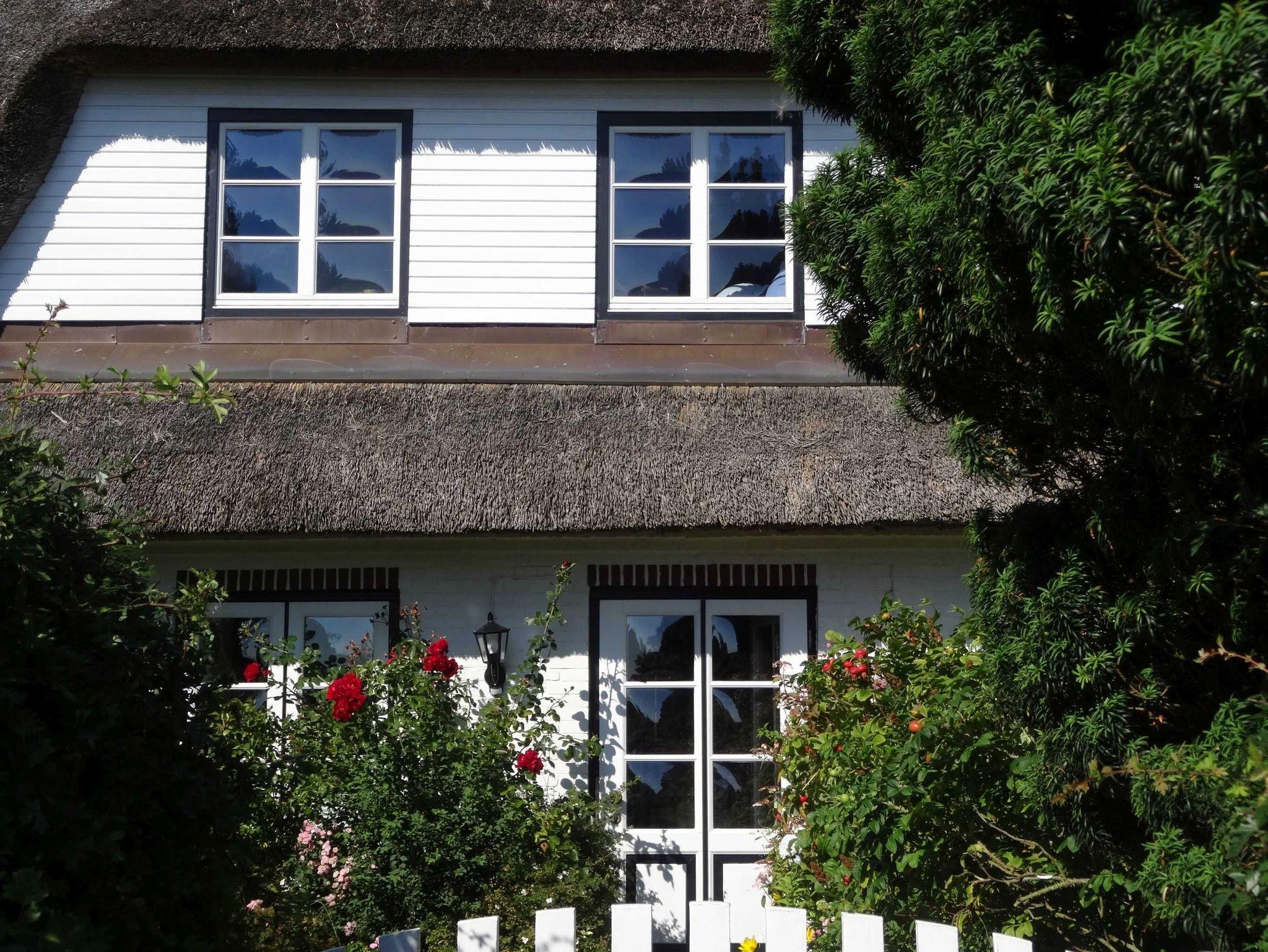 Die größte (105m²) von den 4 Ferienwohnungen - im historischen, wunderschönen Reetdachhaus - hat einen eigenem Eingang vom Innenhof und ist optimal für 4 Personen (+2). Vom Wohnzimmer kann man direkt den Garten betreten. Im Garten finden Sie mit eine 2er- u. eine 4er- Sitzgelegenheit mit Sonnenschirm.