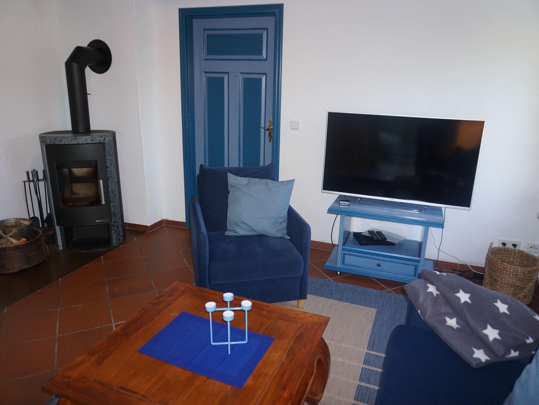 - ein einladendes Wohnzimmer mit Kamin, 1 Schlafsofa und 2 Sessel und einen 3D-Flachbildsschirm (50 Zoll, Sat-TV) ;