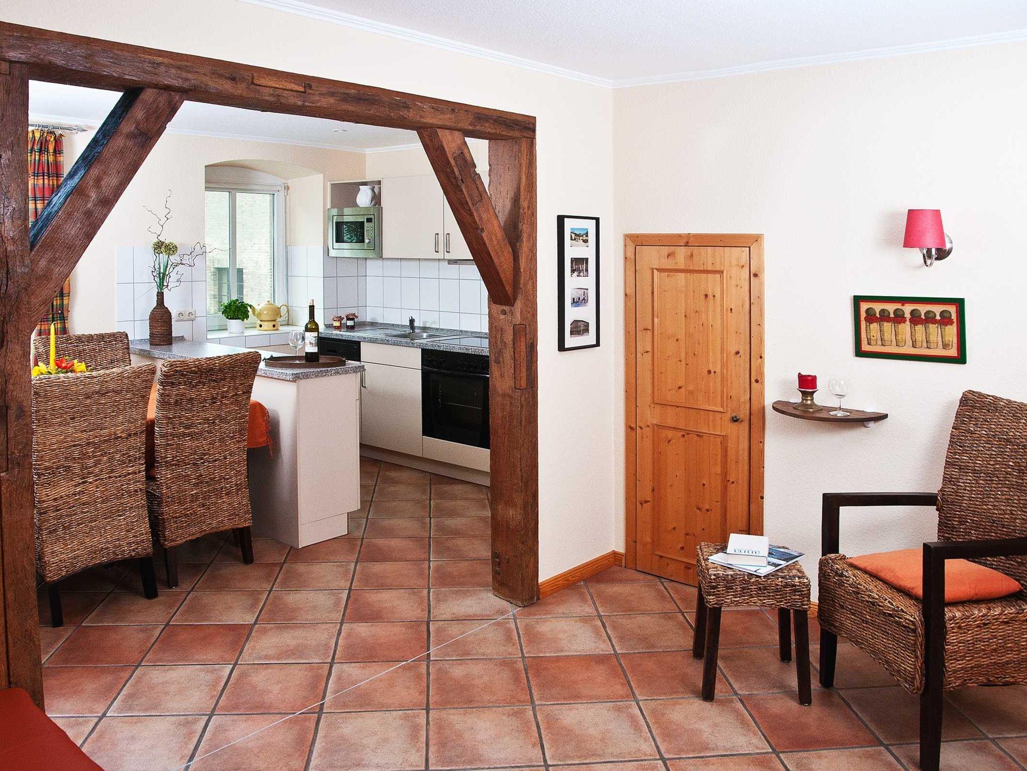 Die Ferienwohnung Innenhof ist rollstuhlgeeignet und bietet bis zu 7 Personen viel Platz zum Wohlfühlen. Moderne und rustikale Elemente sind über zwei Ebenen sehr stilvoll mit romantischen Akzenten im Landhausstil kombiniert.